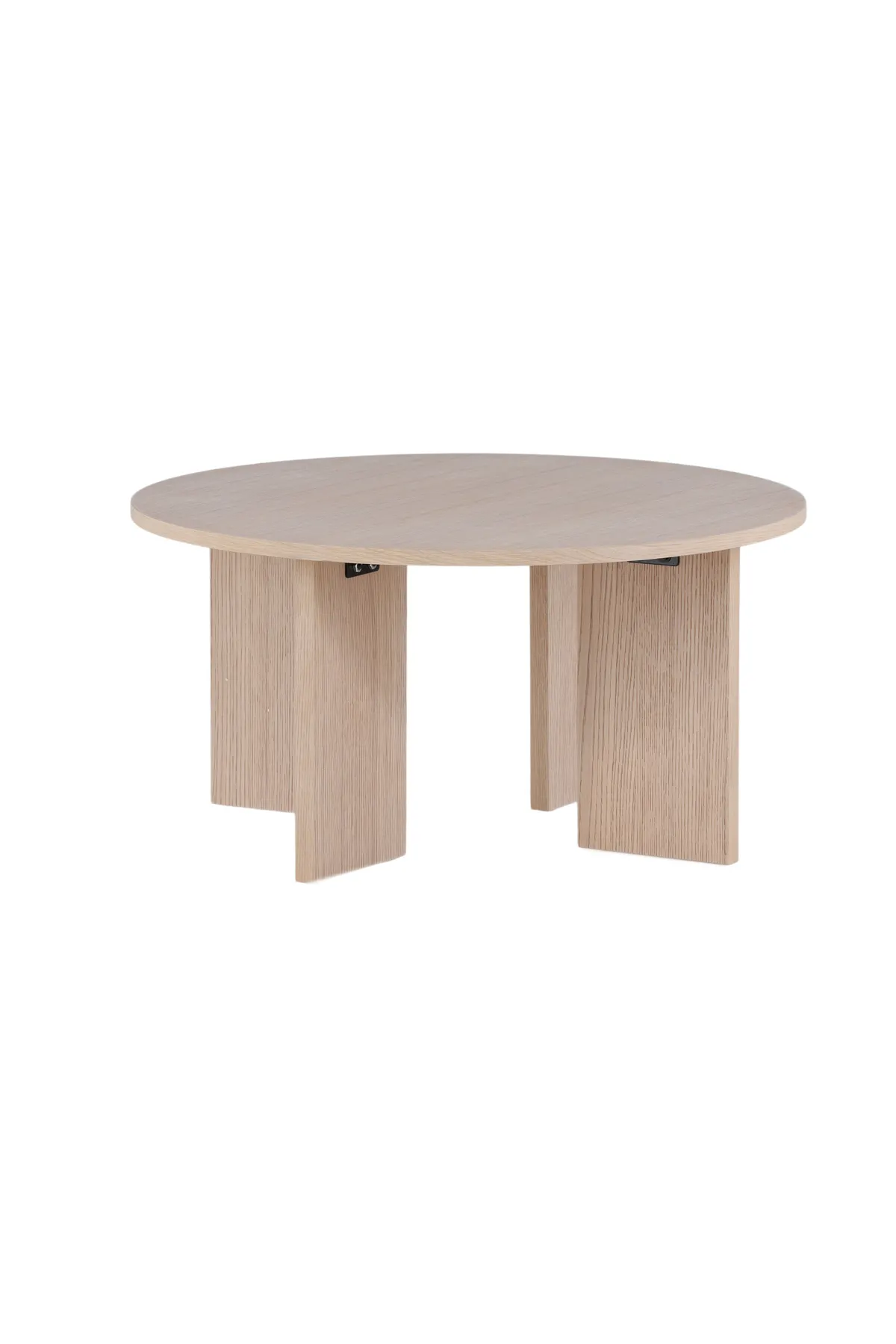 Akerön – ein Couchtisch, der voll im Trend liegt! Die Deckplatte ist rund in weiß verputztem Holz und das Untergestell dekorativ mit vier Stützbrettern aus dem gleichen Material. Das durchdachte Gesamtdesign besticht und schafft einen angenehmen Blickfang vor der Sofagruppe. Dekorieren Sie mit einer schönen Vase und einigen Kerzenständern für ein wohnliches Gefühl und befolgen Sie unsere Pflegehinweise für die besten Tipps, wie Sie den Tisch über die Zeit erhalten!