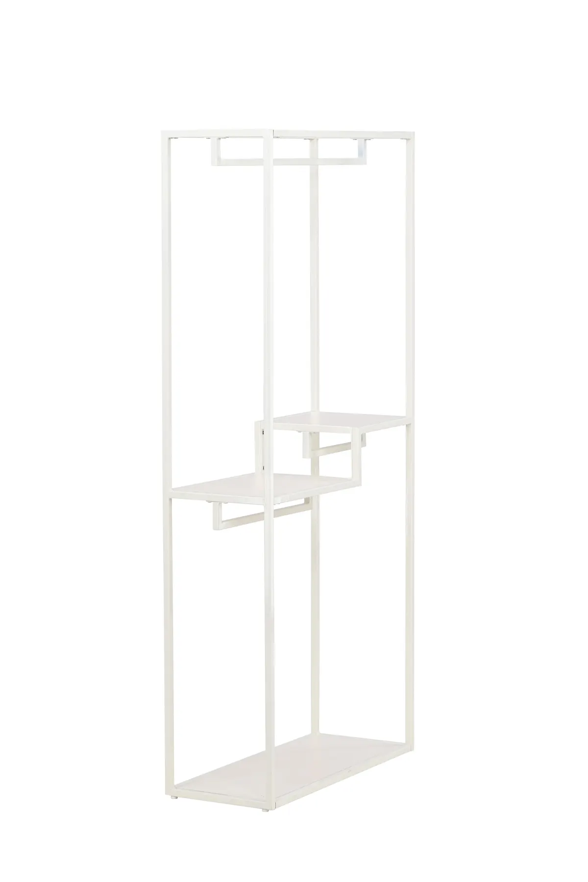Was Staal einzigartig macht, sind seine intelligenten Einlegeböden. Zwei kleinere Regale bieten die Möglichkeit, Schmuck, gefaltete Kleidung oder andere kleine Accessoires zu ordnen, während das größere Regal Platz für größere Gegenstände oder vielleicht ein dekoratives Element bietet. Und als ob das noch nicht genug wäre – Staal bietet auch Platz für Kleiderbügel und ist damit eine Komplettlösung für die Aufbewahrung Ihrer Kleidung.