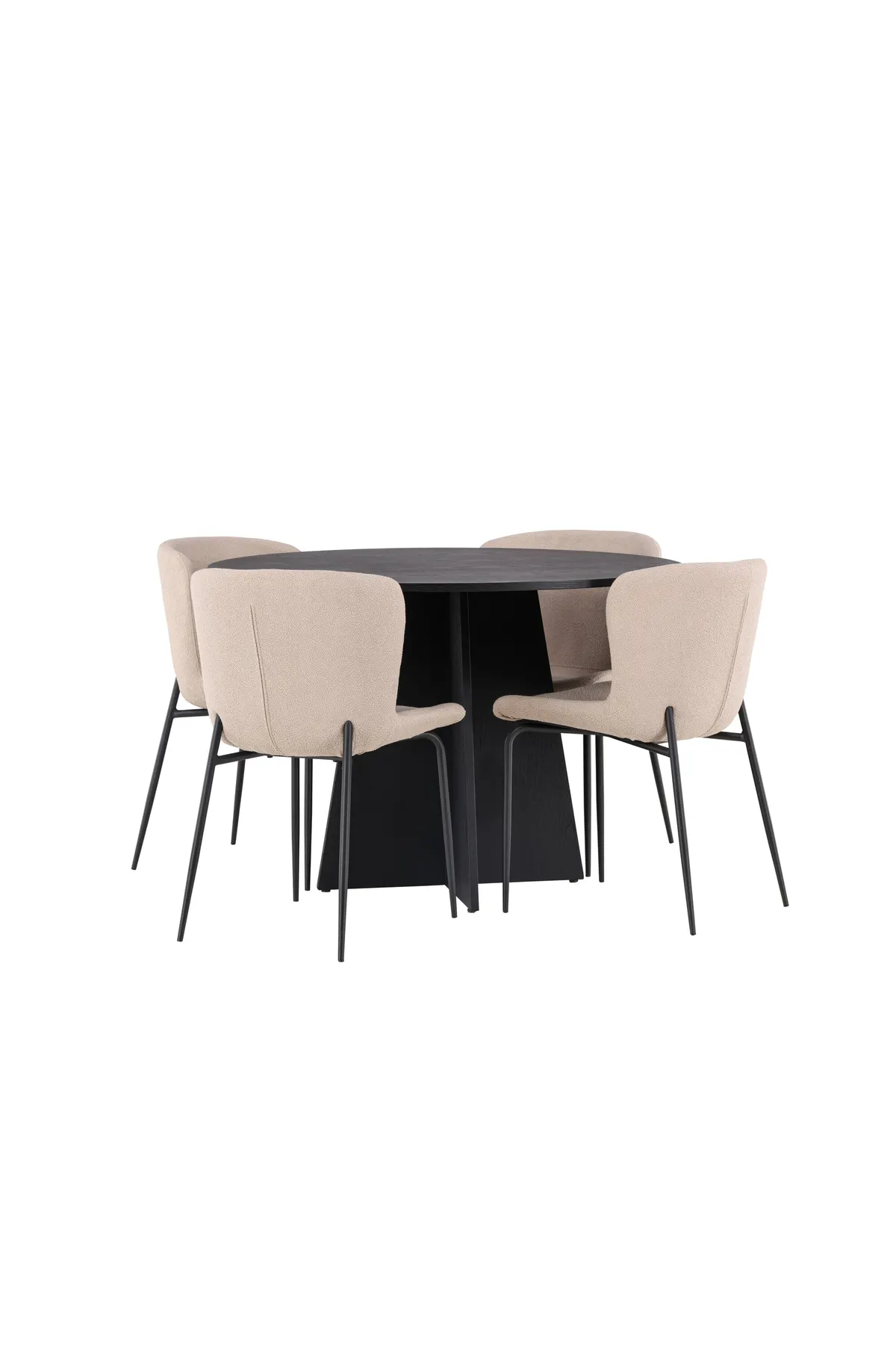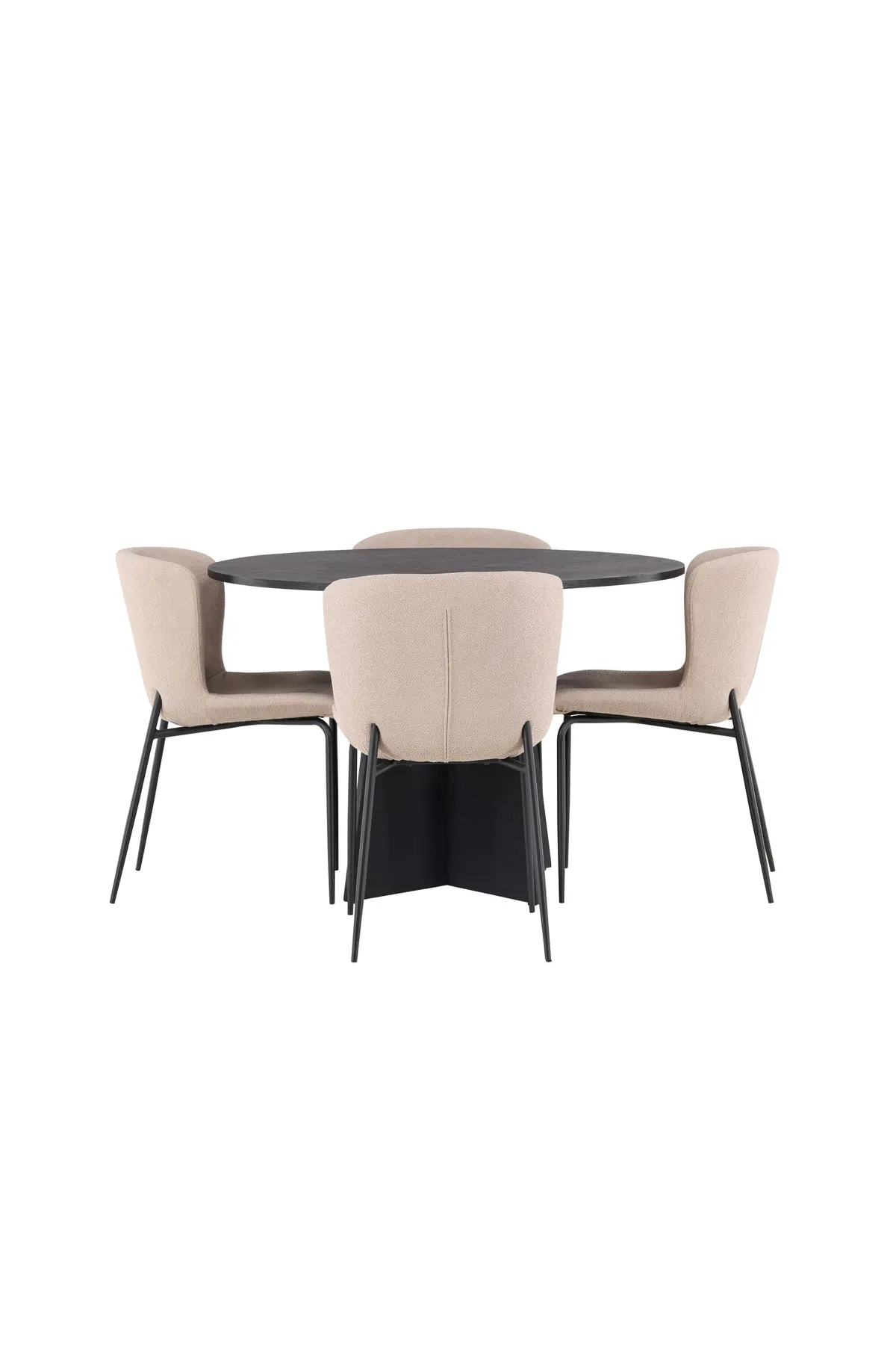 Gut durchdacht und stilvoll! Der runde Esstisch Bootcut in durchgehend schwarzer Farbe hat eine Tischplatte aus MDF mit Furnier und ein designreiches Gestell, das dem Gesamtbild einen schönen Ausdruck verleiht. Hier zusammen mit modebewussten Esszimmerstühlen aus der Serie Modesto. Der Stuhl ist komplett mit grauem Fellstoff gepolstert und hat stilvolle schmale Stuhlbeine aus schwarzem Metall. Die leicht gerundete Rückenlehne und das gepolsterte Sitzkissen sorgen für zusätzlichen Komfort und verlängern angenehme Mahlzeiten am Esstisch. Besser geht’s nicht! Abmessungen des Tisches: 110cm.