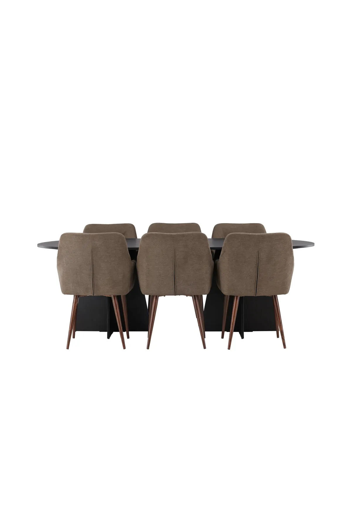 Hier in Kombination mit unseren braunen Esszimmerstühlen aus der Serie Tomorrow. Der bequeme Sitz ist vollständig mit braunem Polyestergewebe gepolstert und hat integrierte Armlehnen. Die leicht ausgestellten Stuhlbeine in modernem Walnussbraun verleihen dem Stuhl einen zusätzlichen Hauch von raffiniertem Stil. Ein Stuhl, der zu langen und entspannten Momenten am Esstisch einlädt.