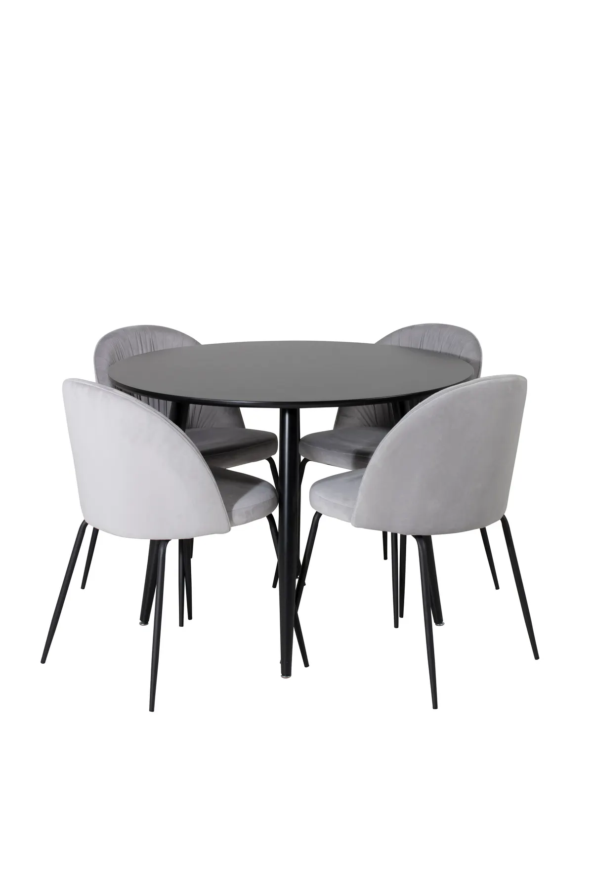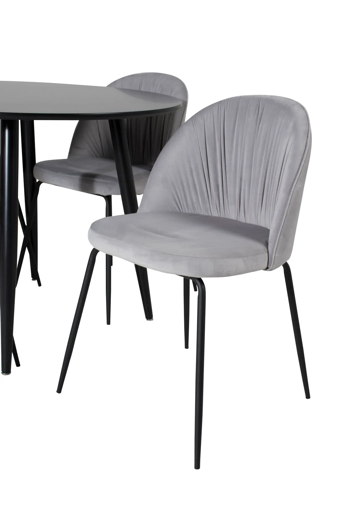 Eine moderne Essgruppe in stilvollen Grautönen! Die Esszimmerstühle der Serie Wrinkles sind nicht nur schön für das Auge, sondern auch unglaublich bequem. Hier zusammen mit unserem runden Esstisch Plaza in eleganter schwarzer Tischplatte. Lassen Sie sich und Ihre Einrichtung von dieser auffälligen Essgruppe inspirieren, die nie aus der Zeit fällt.