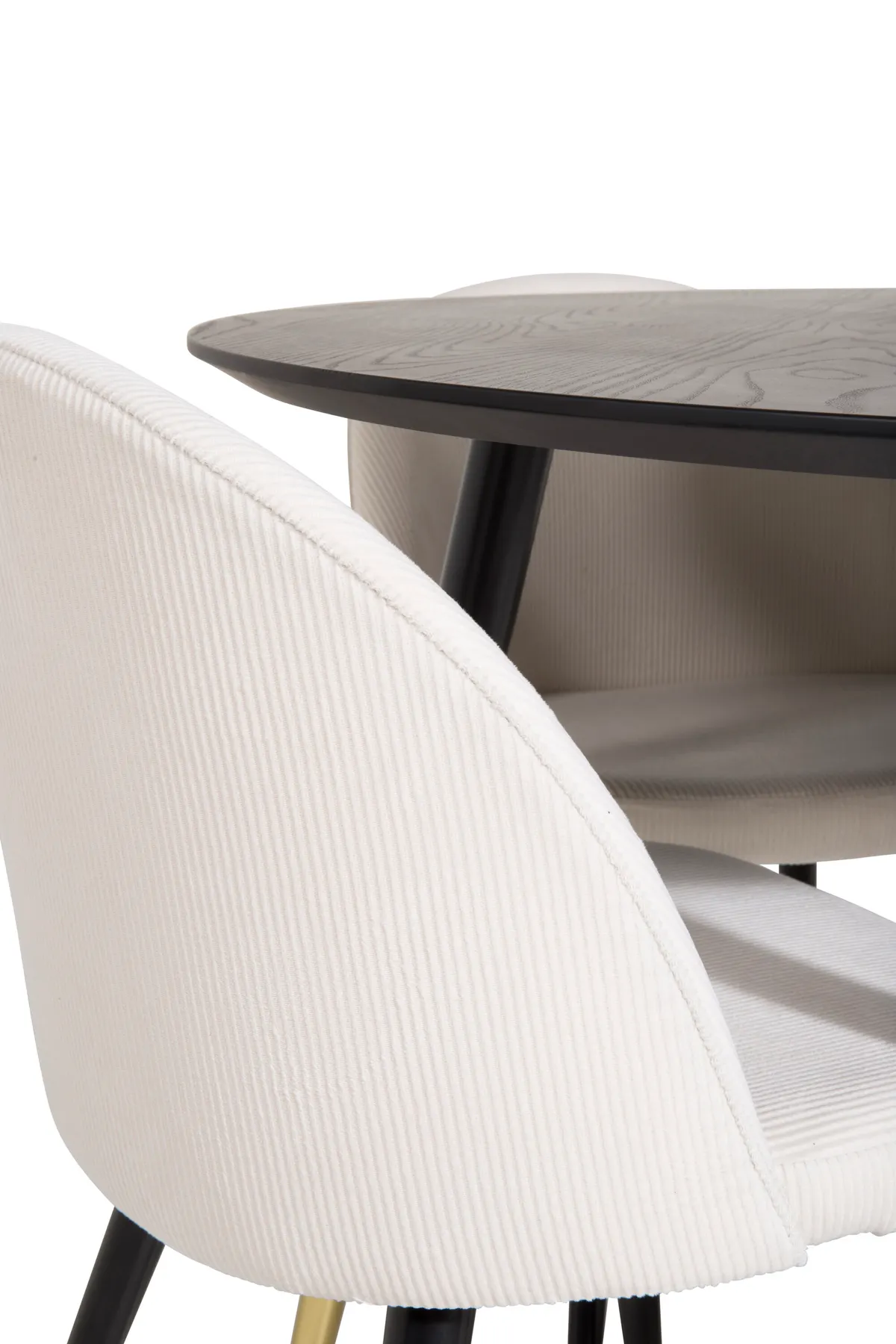 Moderner und gepflegter Esstisch von dip – hier zusammen mit Esszimmerstühlen aus der Serie Velvet. Eine stilvolle Essgruppe, die zu vielen Abendessen in Gesellschaft guter Freunde einlädt.