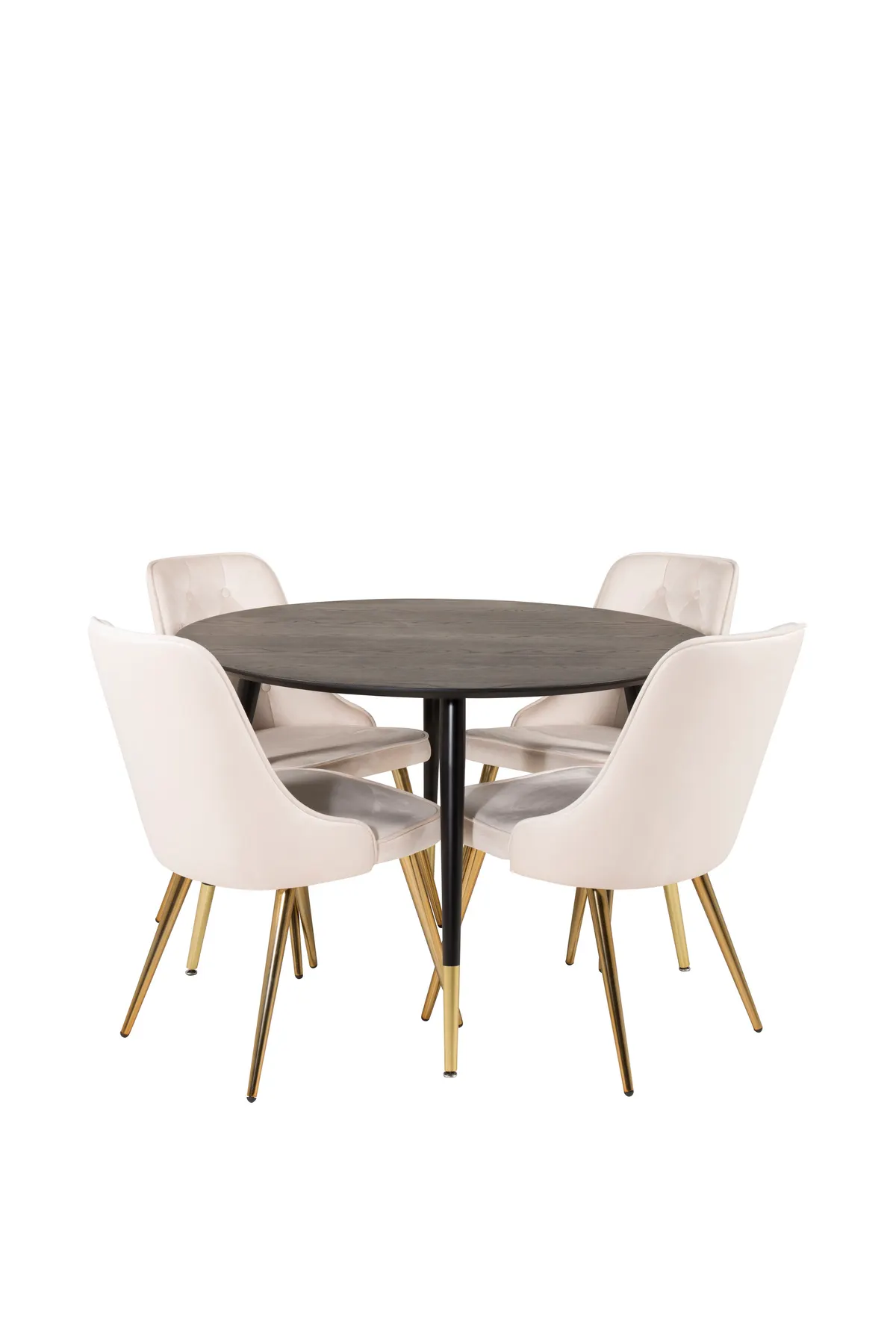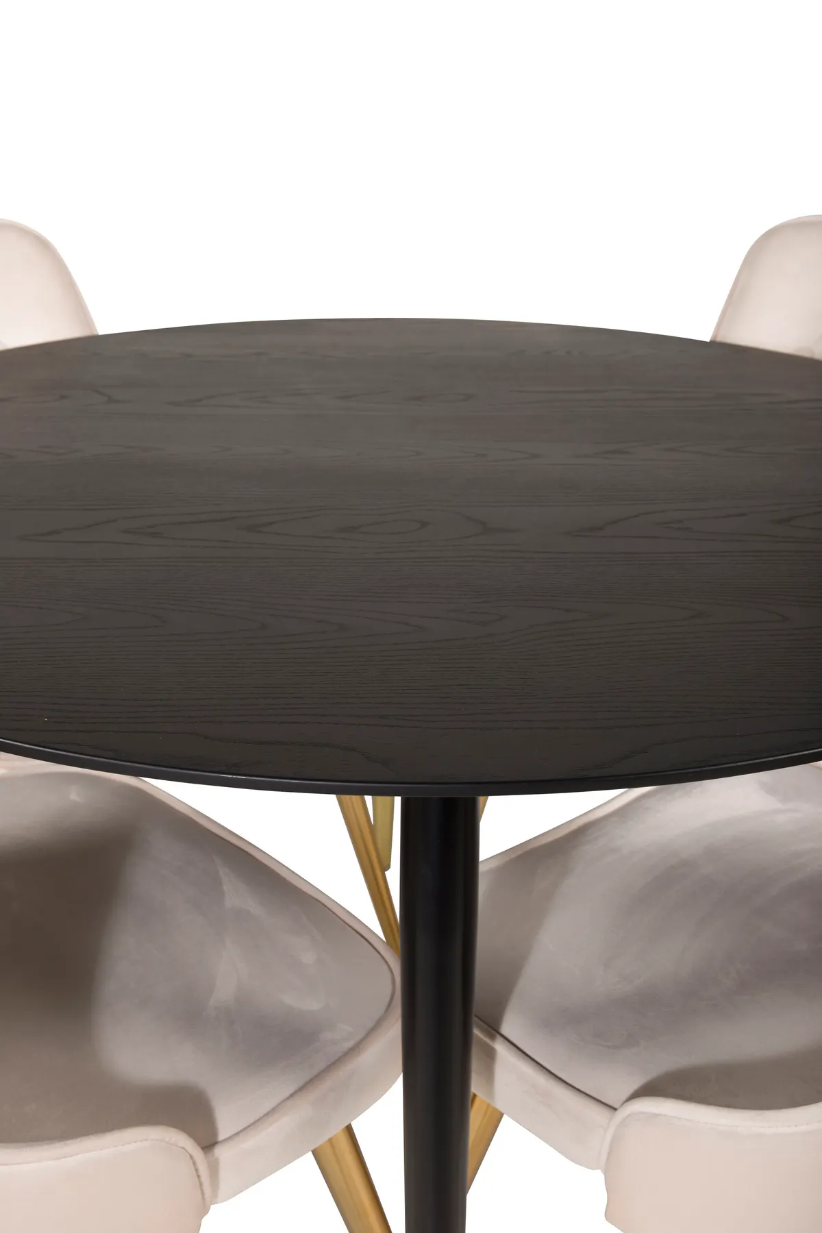 Eine einladende und moderne Essgruppe mit warmem und familiärem Charakter! Versammeln Sie die Familie um unseren eleganten Esstisch dip. Hier zusammen mit eleganten Esszimmerstühlen der Serie Velvet – lassen Sie die Zeit am Esstisch zu einem der Höhepunkte des Tages werden!