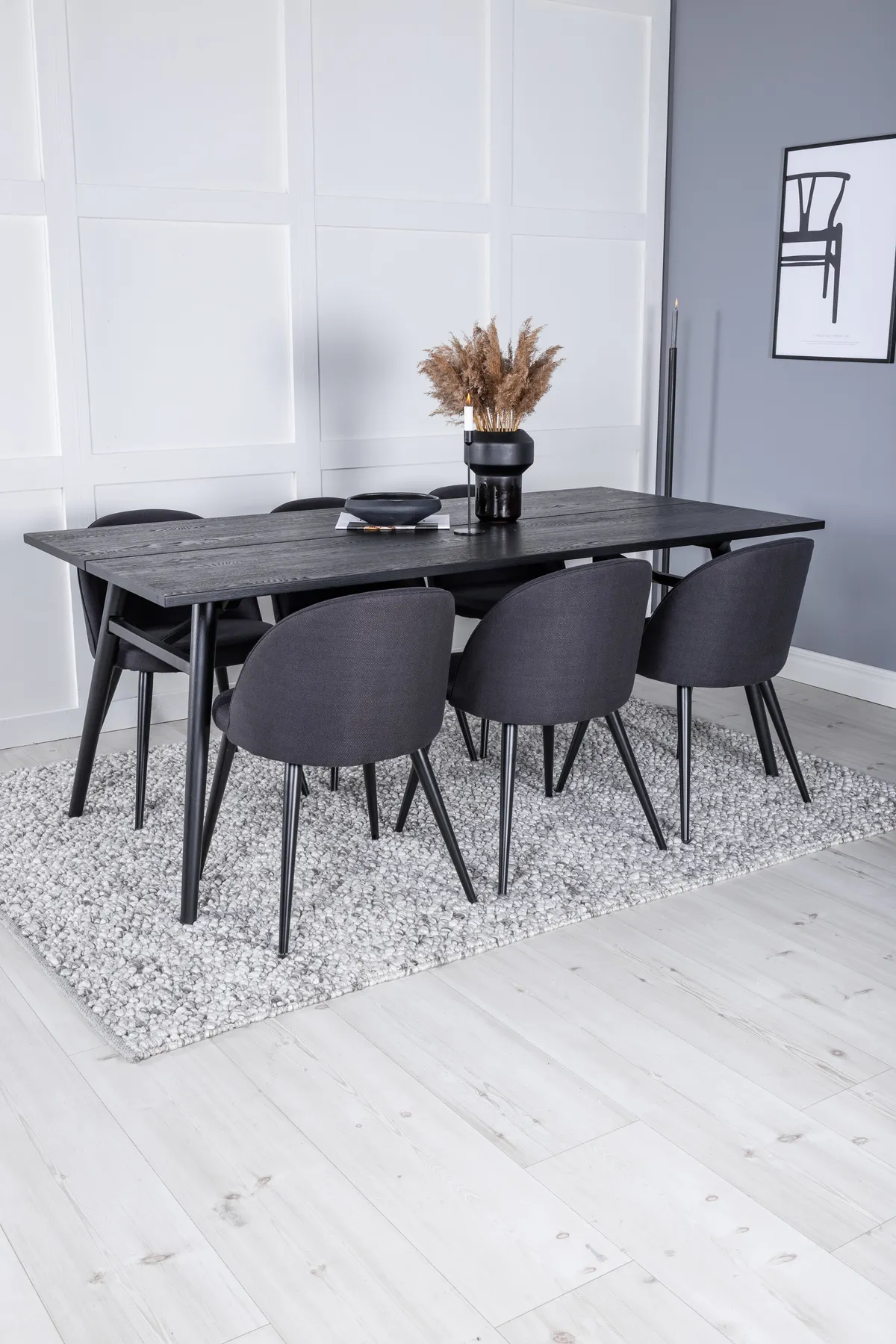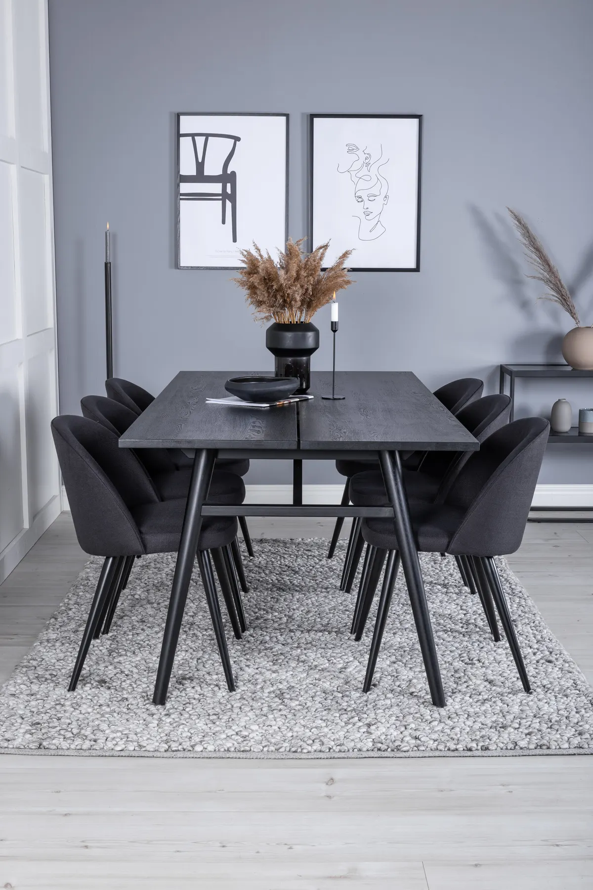 Esstisch Elegant im klassischen Stil. Zum Tisch kommen unsere beliebten Esszimmerstühle Velvet, eine Kombination, die ein elegantes, natürliches und einladendes Gefühl für den Raum schafft. Erweitern Sie Ihre Essenseinladungen und machen Sie sich keine Sorgen mehr, ob alle untergebracht werden können.