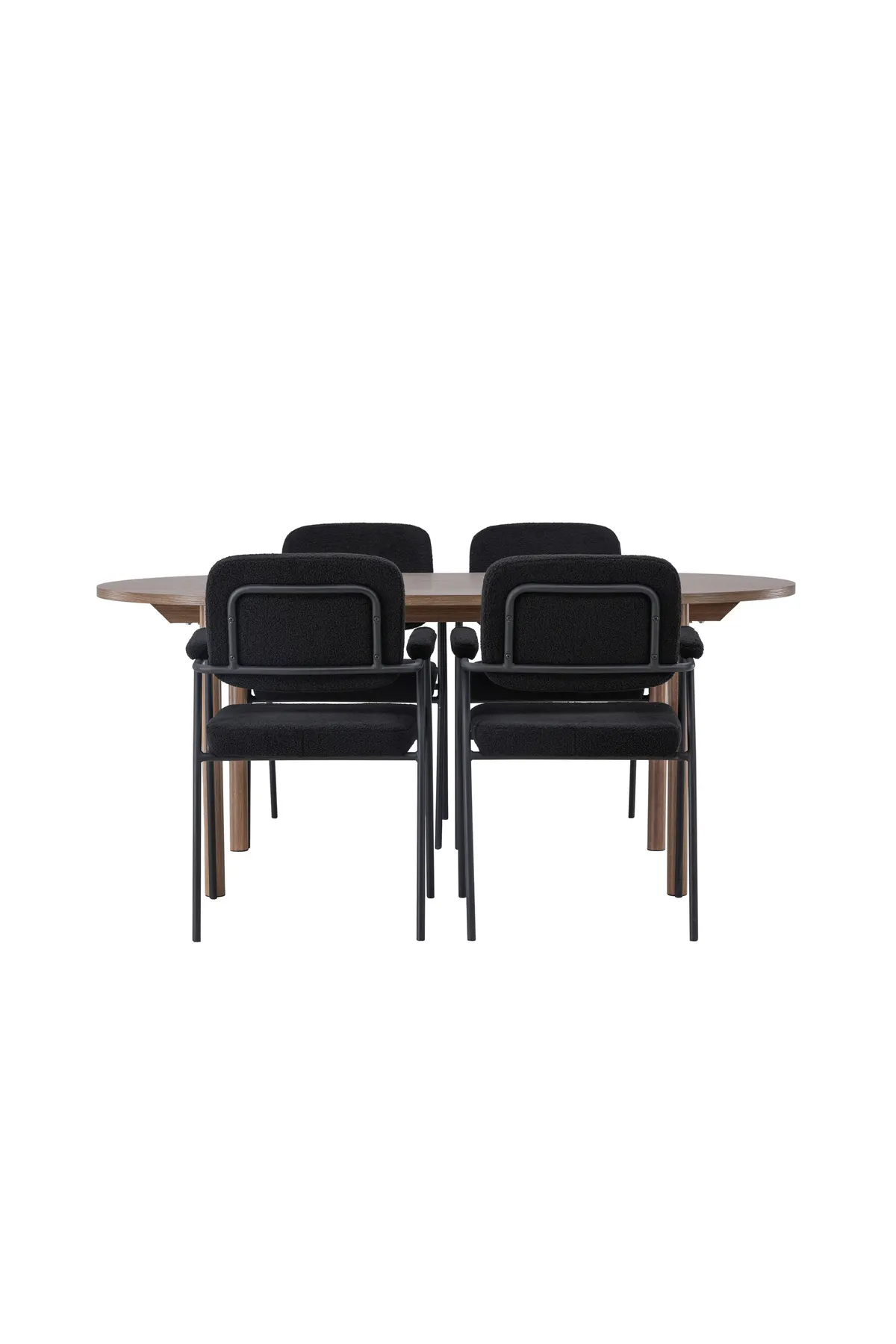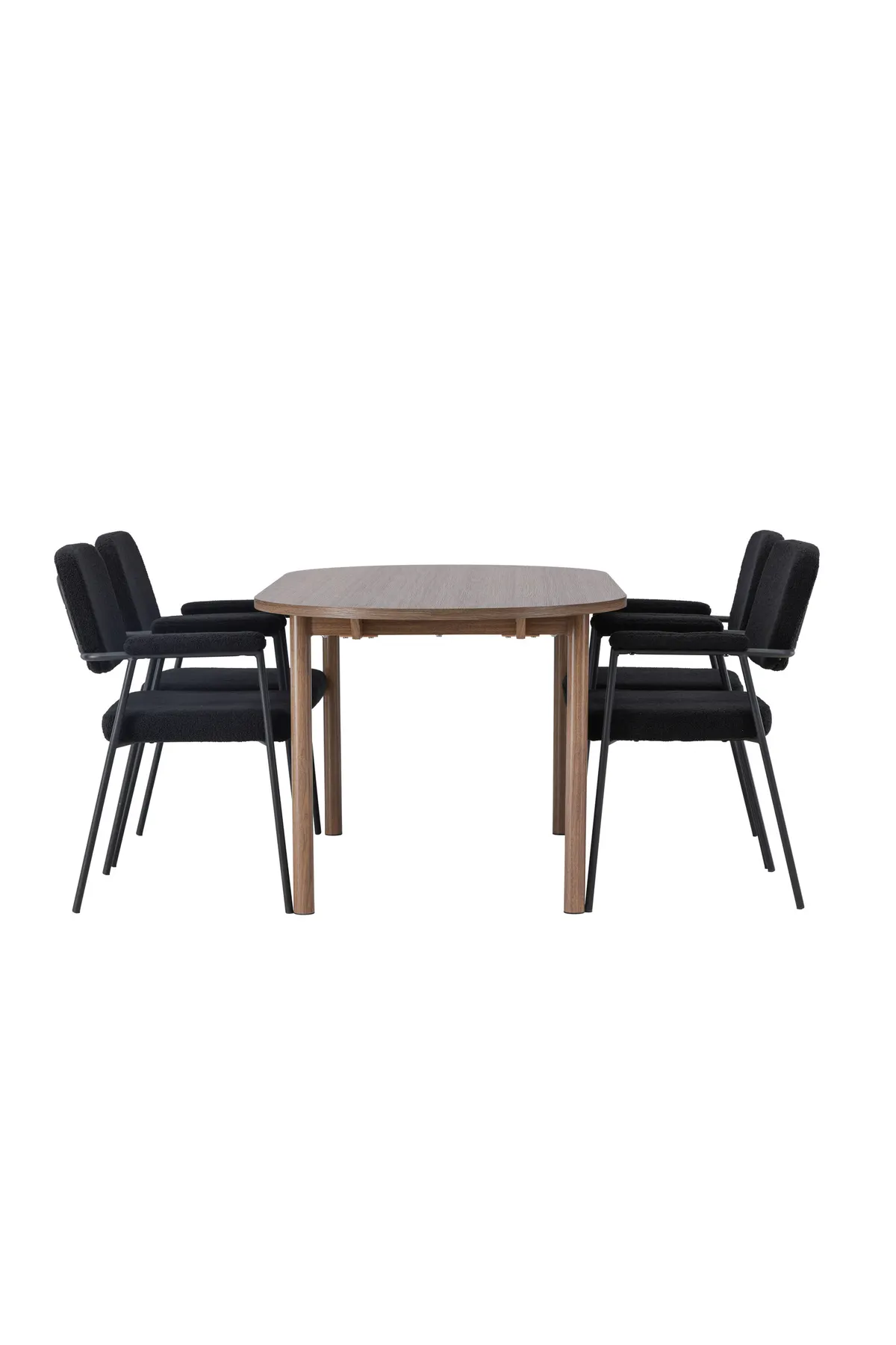 Zu dem runden Esstisch bieten wir unsere schwarzen Esszimmerstühle aus der Serie Yesterday an. Die vollständig gepolsterte Sitzfläche aus schwarzem Bouclé-Stoff bietet nicht nur einen eleganten und modernen Look, sondern auch außergewöhnlichen Komfort. Die schlanken schwarzen Metallbeine verleihen den Stühlen einen dezenten und stilvollen Touch. Zusätzlich sind sie mit integrierten Armlehnen ausgestattet, die für zusätzlichen Komfort und Entspannung sorgen.