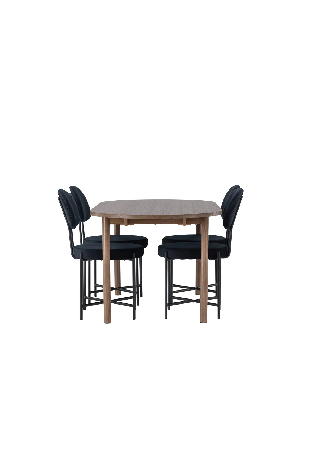 Mit diesem Esstischset können Sie jede Mahlzeit mit Stil und Komfort genießen. Die designstarke Sitzposition und die exklusiven Materialien des Tisches und der Stühle werden Ihnen ein Gefühl von Luxus und Wohlbefinden vermitteln!