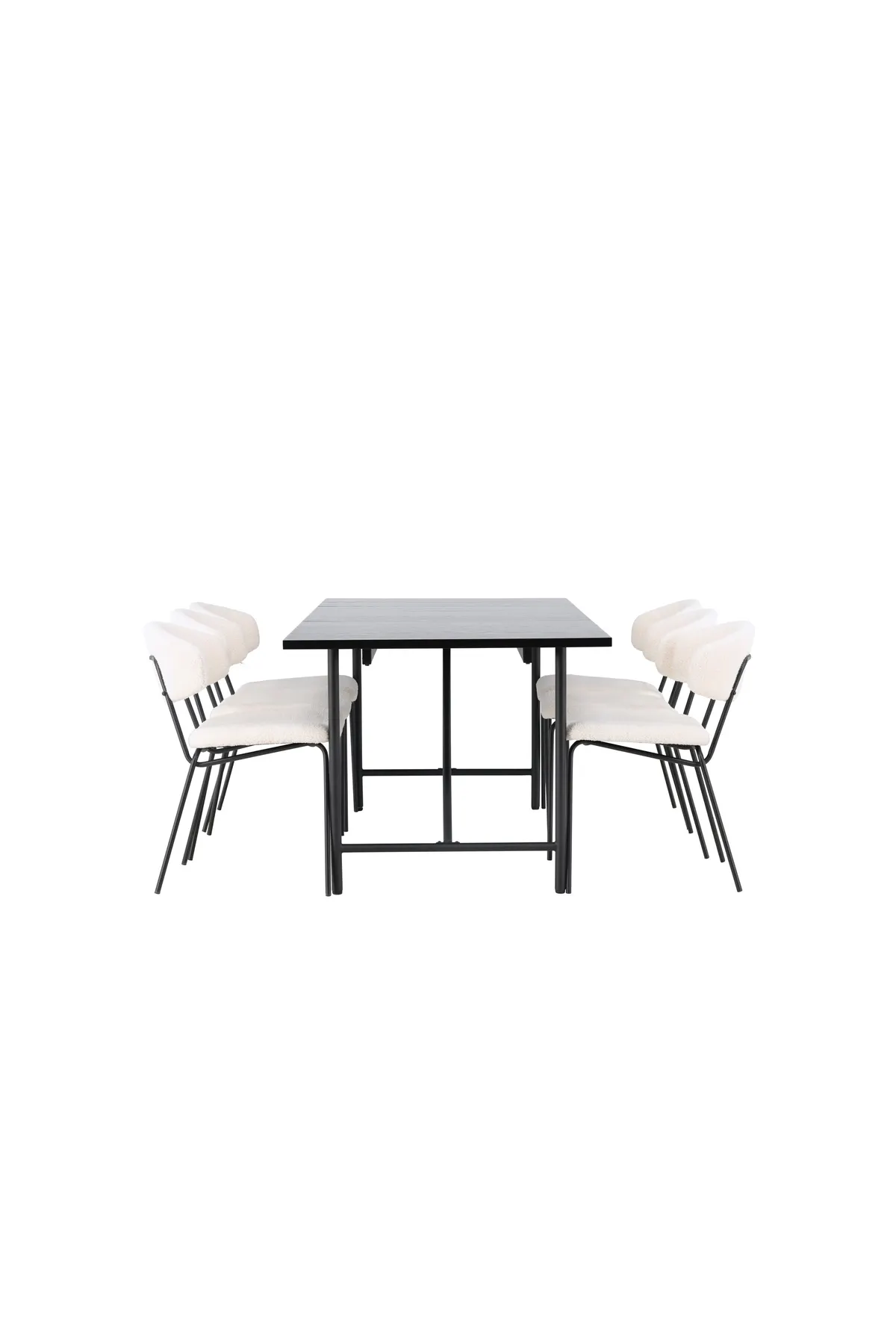 Hier haben wir den Esstisch mit den auffälligen Stühlen der Serie Chico ergänzt. Dieser Stuhl kombiniert einen minimalistischen Stil mit einem runden und schlanken Design. Der Bouclé-Stoff in einem schönen Beigeton vermittelt ein Gefühl von Luxus und Komfort. Die Sitzfläche und die Rückenlehne sind gepolstert und sorgen für zusätzlichen Komfort bei langen Mahlzeiten und angenehmen Gesprächen. Die schwarze Stahlkonstruktion ist nicht nur trendy, sondern sorgt auch für Stabilität und Langlebigkeit. Einfach gesagt: ein perfektes Design.