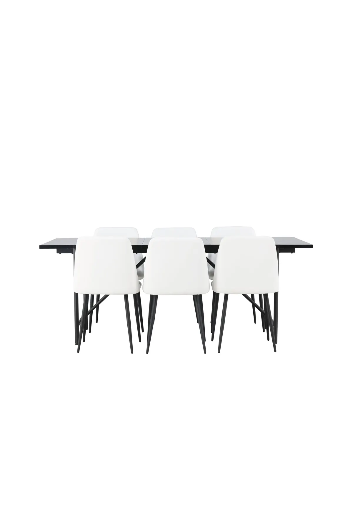 Zum Esstisch haben wir unsere weißen Stühle aus der Serie Night kombiniert, die Komfort mit schlichter Eleganz verbinden. Die Sitzfläche der Stühle ist vollständig mit weißem PU-Leder gepolstert, und die Stuhlbeine sind passend zum Tisch in einem eleganten Schwarzton gehalten. Mit seinem komfortablen und luxuriösen Sitzgefühl ist der Night-Stuhl der perfekte Begleiter für den Astrid-Esstisch.