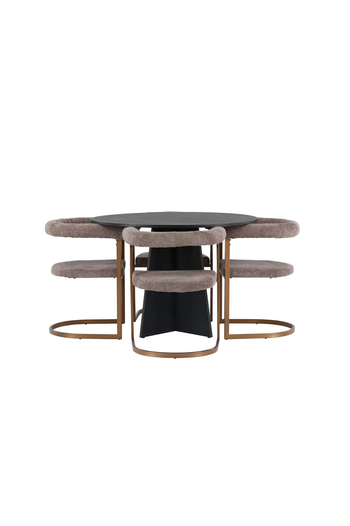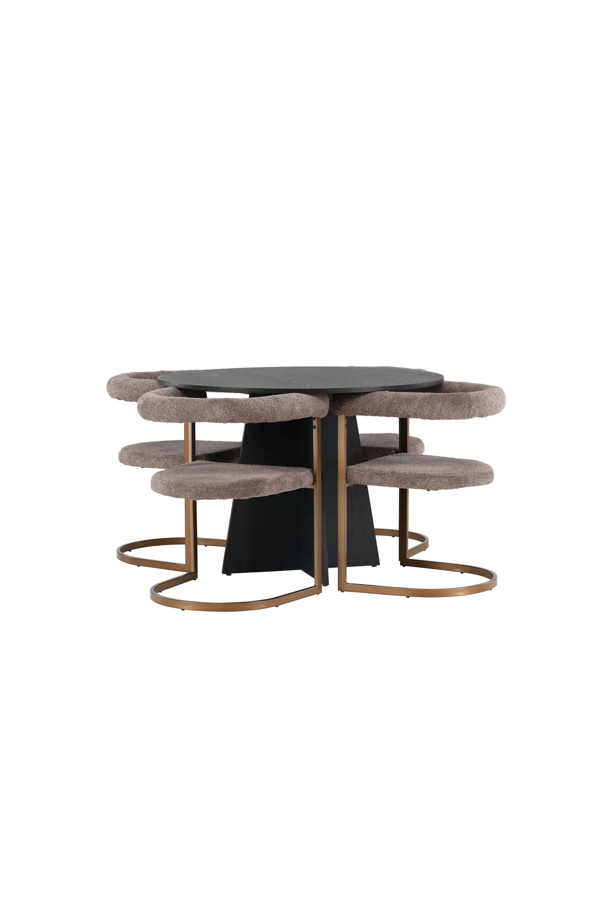 Hier in einer schönen Kombination mit unseren eleganten Esszimmerstühlen aus der Morning-Serie. Dieser reizvolle Stuhl wurde sowohl mit Blick auf Komfort als auch auf Stil entworfen. Die abgerundete Rückenlehne und die gepolsterte Sitzfläche mit schwarzem Bouclé-Stoff bieten ein angenehmes Sitzgefühl, das es Ihnen ermöglicht, während der gesamten Mahlzeit bequem zu sitzen.