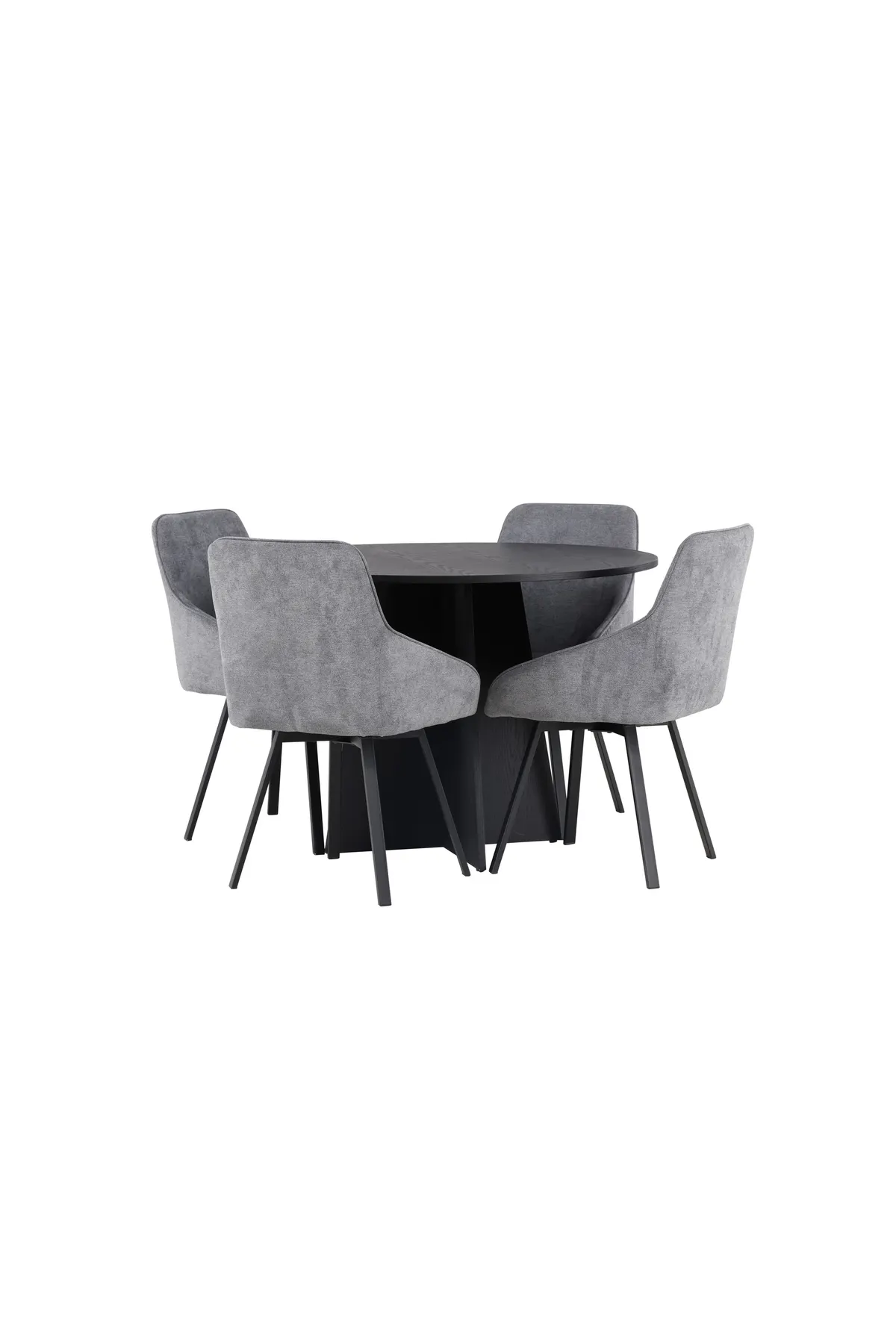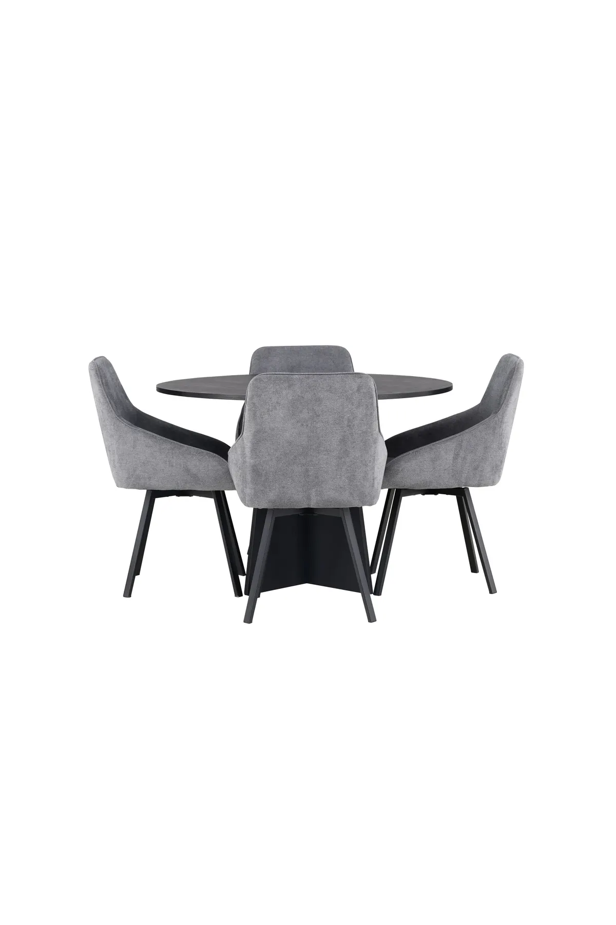 Unser runder Esstisch Bootcut ist aus schwarzem MDF mit Furnier gefertigt und hat ein designreiches Gestell, das ihm einen eleganten und stilvollen Look verleiht. Die glatte Oberfläche des Tisches lässt genau die richtige Menge an Mustern des Wohnmaterials durch, was zu dem einzigartigen Stil beiträgt. Abmessungen des Tisches: 110cm.
