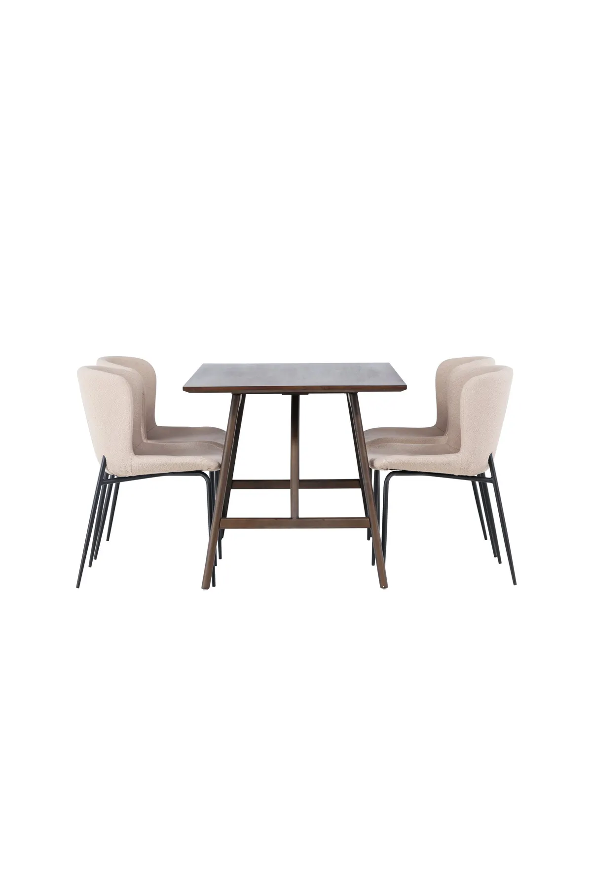 Unser rechteckiger Esstisch, Kaseidon, ist das Herzstück dieser fantastischen Essgruppe. Die dünne MDF-Tischplatte hat eine glatte Oberfläche, und die leicht ausgestellten Tischbeine aus Gummibaumholz sorgen für einen subtilen Hauch von Eleganz und Stabilität. Der Tisch ist in einer modernen walnussbraunen Farbe gehalten, die sich schnell in ein modernes Zuhause einfügt. Abmessungen des Tisches: 80x120cm.