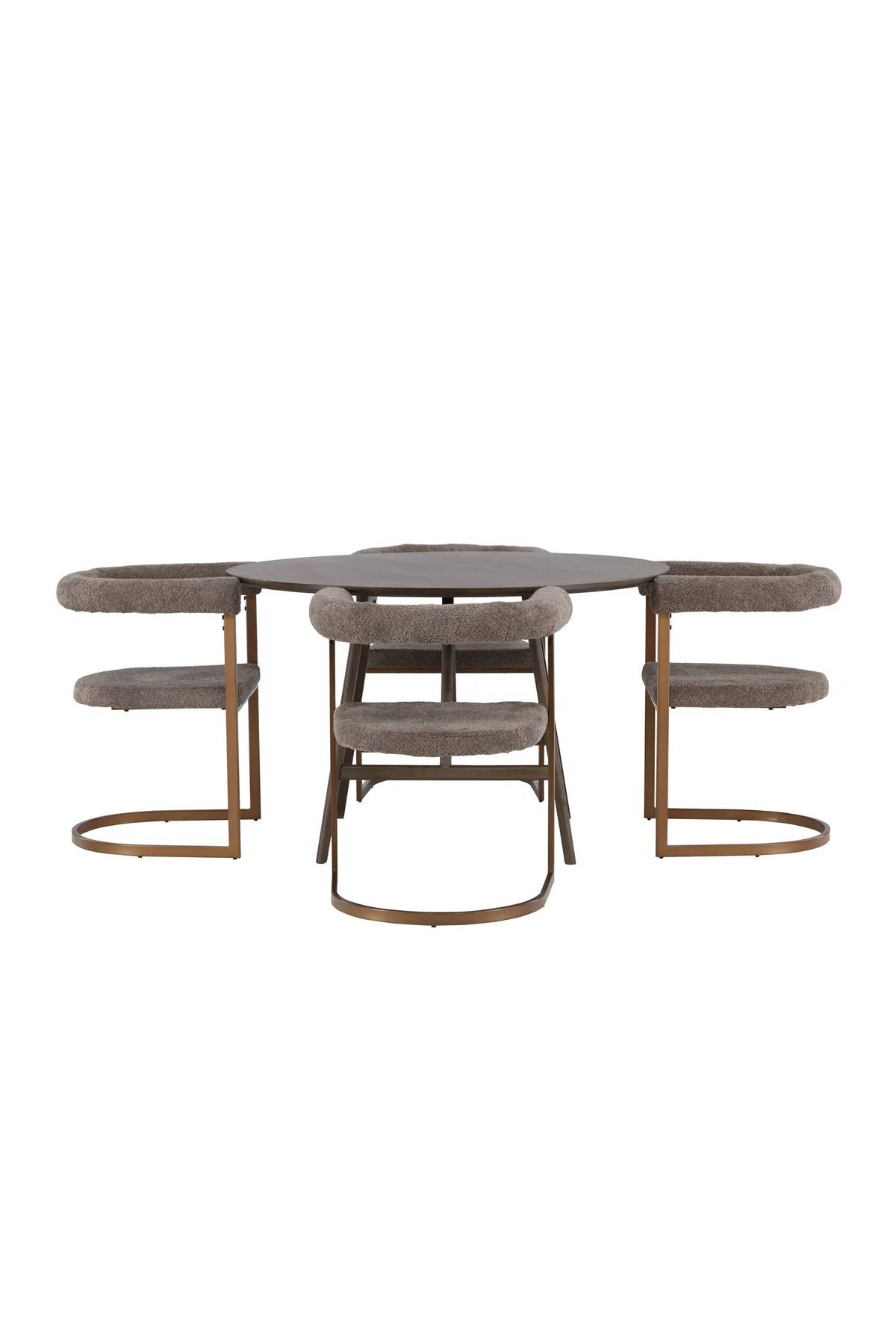 Hier wird der Esstisch durch unsere trendigen Morning Esszimmerstühle ergänzt. Der Stuhl kombiniert Komfort und schlichte Eleganz auf die bestmögliche Weise. Die abgerundete Rückenlehne und die gepolsterte Sitzfläche, die mit grauem Bouclé-Stoff bezogen ist, sorgen für ein luxuriöses und einladendes Gefühl. Das braune Stahlgestell hat ein minimalistisches Design, das perfekt zum Tisch passt.