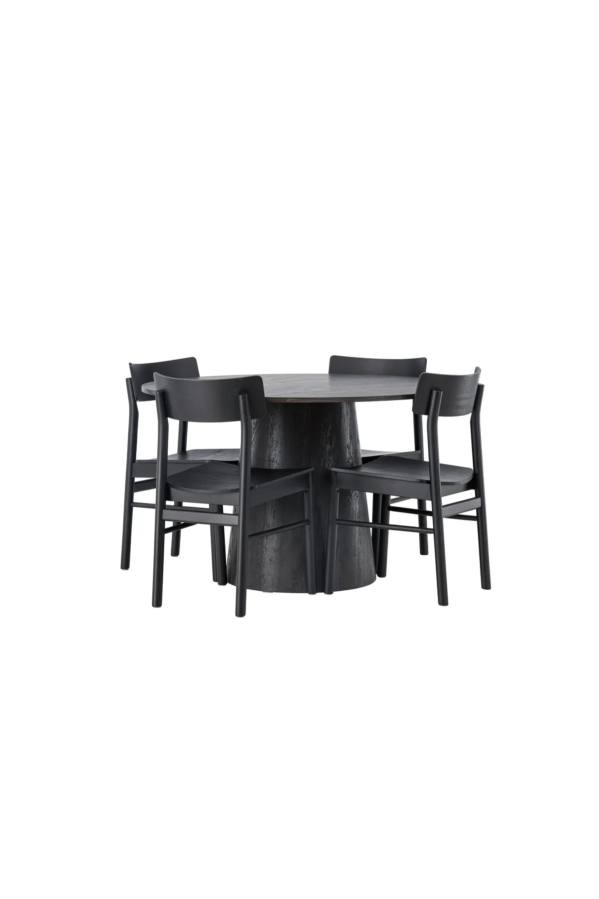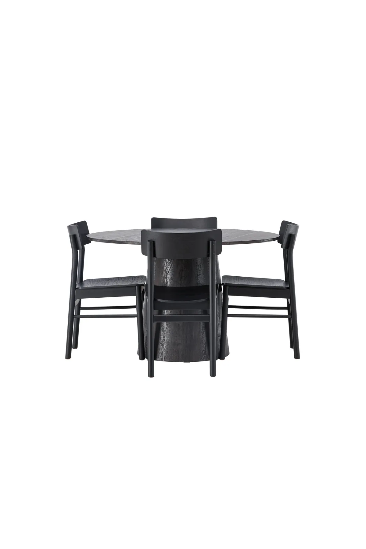 Skandinavisches Design in seiner besten Form! Unser wunderschöner, runder Esstisch Lanzo hat ein Gesamtdesign aus braunem MDF mit einer dünnen Platte und einem verdrehten zylindrischen Rahmen, der unter dem Tisch zentriert ist. Hier in geschmackvoller Kombination mit modernen Esszimmerstühlen aus der Montros-Serie. Der Stuhl hat ein klassisches und nostalgisches Design mit geraden nordischen Formen und ist durchgehend aus schwarzem Gummibaumholz gefertigt. Ganz einfach, eine perfekte Ergänzung! Tisch-Durchmesser: 120cm.