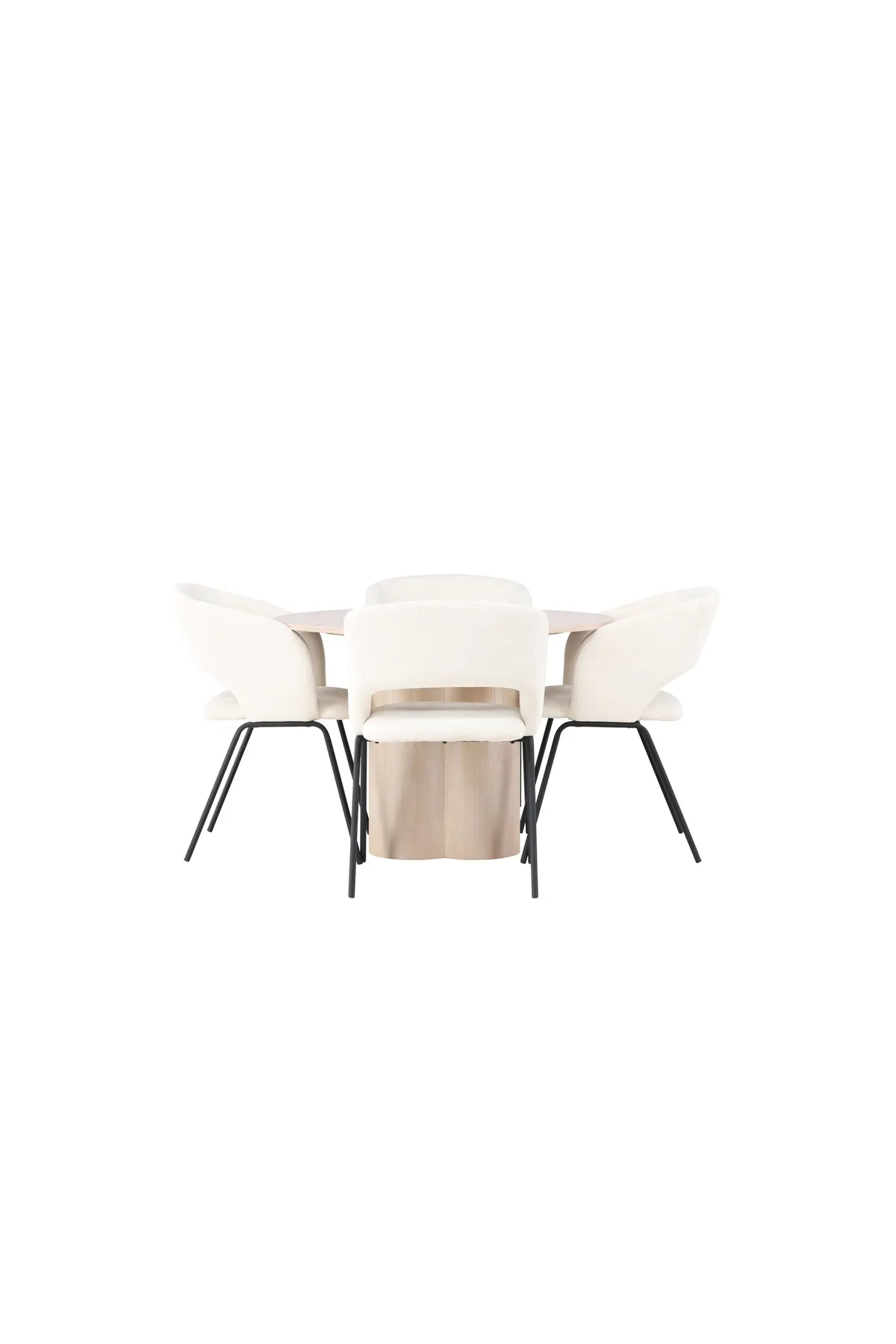 Hier in perfekter Kombination mit unseren weißen Stühlen aus der Serie Day. Diese Stühle fallen sofort durch ihr durchdachtes Design, die weichen Kurven und die minimalistische Struktur auf. Mit einer vollständig gepolsterten Sitzfläche aus weißem Leinenstoff und einer offenen Rückenlehne bieten sie einen bequemen und einladenden Platz zum Sitzen während der Mahlzeiten. Die schlanken Stuhlbeine aus schwarzem Stahl bilden einen stilvollen Kontrast.