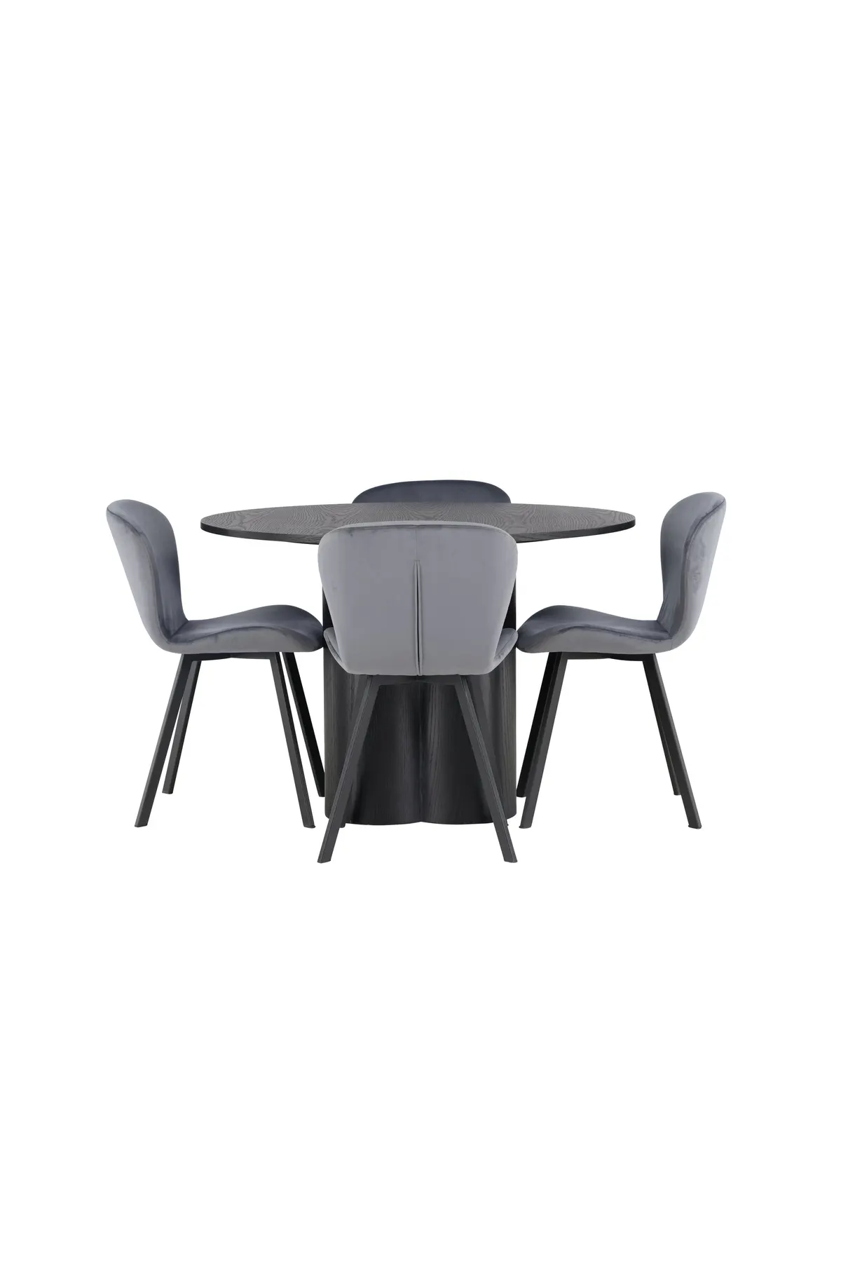 Als Ergänzung zu diesem schönen Esstisch werden graue Esszimmerstühle aus der Lilja-Serie mitgeliefert. Diese Stühle haben ein biegsames rundes Design und eine bequeme Sitzfläche aus grauem Polyestergewebe. Die leicht ausgestellten Stuhlbeine aus schwarzem Metall verleihen ihnen einen modernen Touch und bilden eine geschmackvolle Farbkombination. Zusammen bilden der Esstisch Olivia und die Lilja-Esszimmerstühle eine perfekte Einheit, die den Ton für eine stilvolle und einladende Essgruppe in Ihrem Zuhause angeben wird!