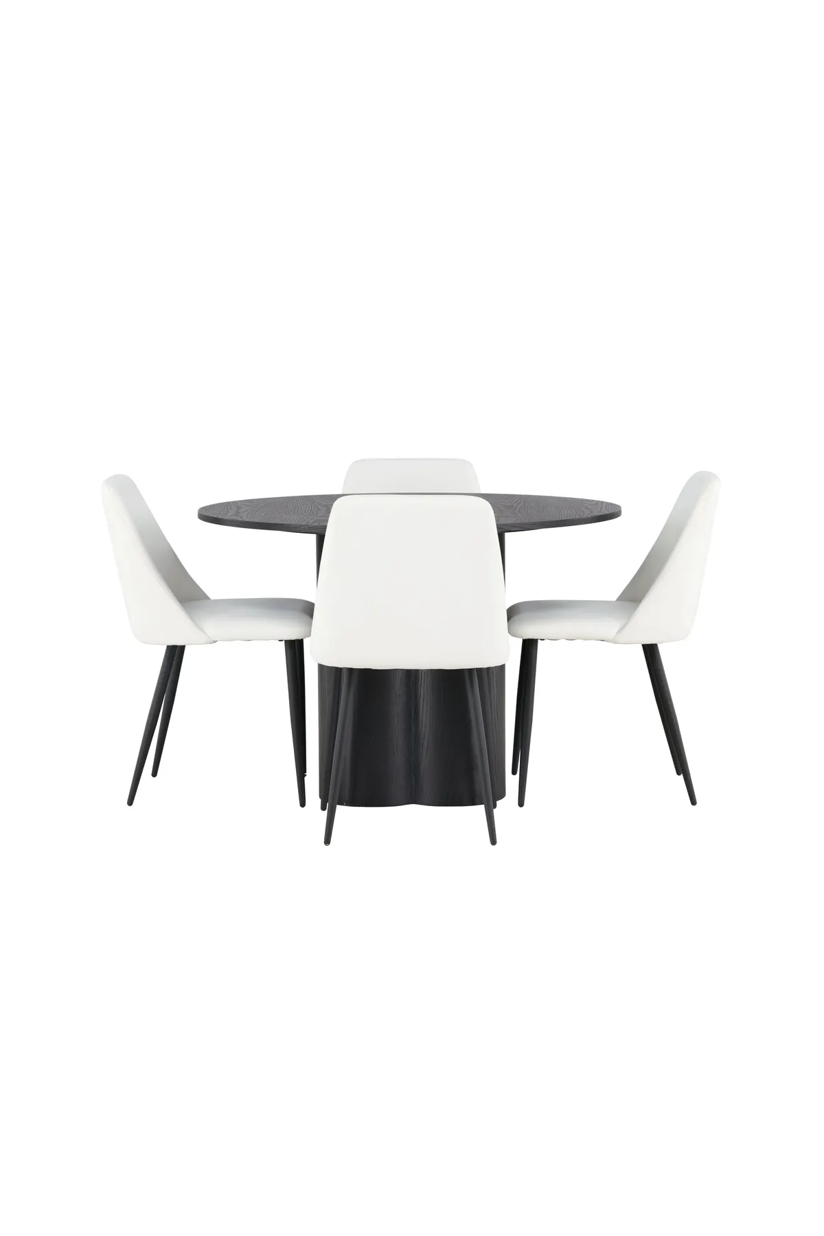 Hier in einer wunderbaren Kombination mit unseren weißen Stühlen aus der Night-Serie. Die weiße PU-Polsterung vermittelt ein Gefühl von Exklusivität und bietet darüber hinaus einen wunderbaren Komfort. Die schwarzen Stahlbeine des Stuhls sind nicht nur robust, sondern tragen auch zu seinem modernen und klaren Erscheinungsbild bei. Dank der gepolsterten Sitzfläche können Sie lange am Esstisch sitzen, ohne auf Komfort verzichten zu müssen.