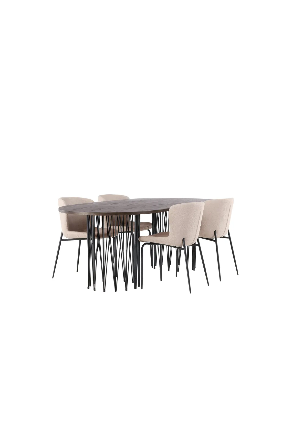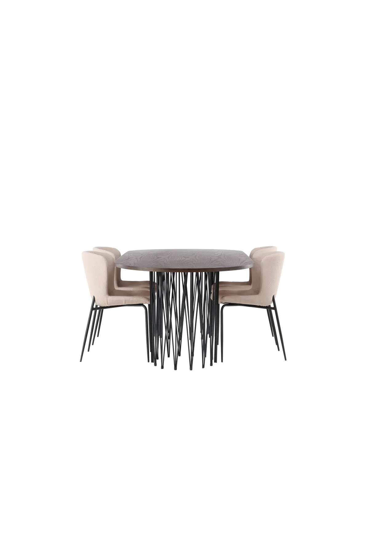 Heißen Sie Ihr Zuhause mit einem charmanten Herzstück willkommen! Unser ovaler Esstisch Stone besticht durch sein modebewusstes Design. Der Tisch hat eine schöne braunfarbene Tischplatte aus MDF mit Furnier und zwei dekorative zylindrische Gestelle aus schwarzem Metall. Hier zusammen mit modebewussten Esszimmerstühlen aus der Serie Modesto. Der Stuhl ist vollständig mit grauem Zottelstoff gepolstert und hat stilvolle schmale Stuhlbeine aus schwarzem Metall. Die leicht gerundete Rückenlehne und das gepolsterte Sitzkissen sorgen für zusätzlichen Komfort und verlängern angenehme Mahlzeiten am Esstisch. Sitzen Sie bequem mit Freunden und Familie! Abmessungen des Tisches: 220x100cm.