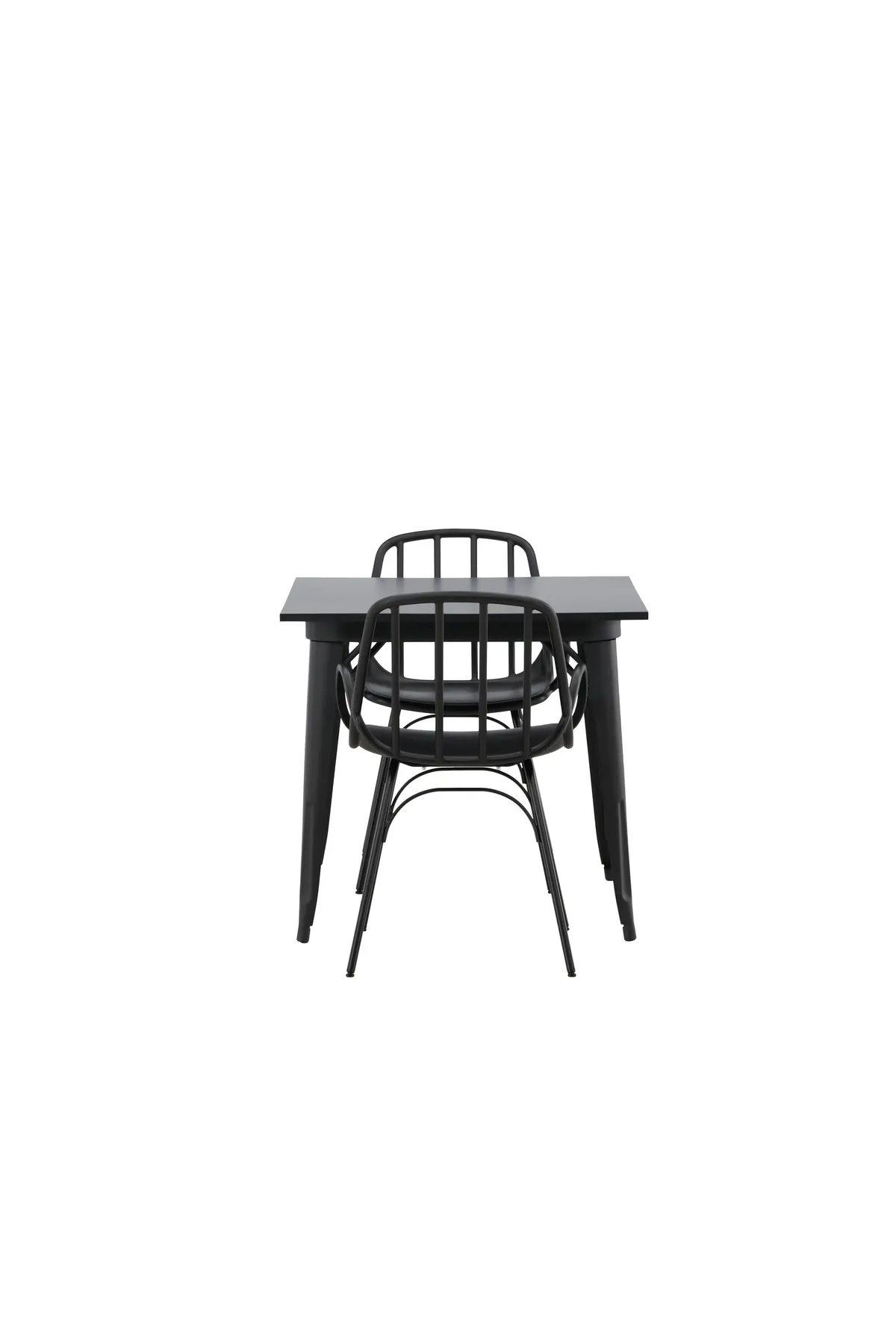 Eine perfekte Essgruppe für die kleine Küche! Der Esstisch Tempe hat ein skandinavisches Design mit geraden, nordischen Formen, die den Test der Zeit bestehen. Hergestellt mit einer quadratischen Tischplatte aus schwarzem MDF und Tischbeinen aus schwarzem Metall. Hier zusammen mit 2 Esszimmerstühlen aus der Serie Dyrön. Der Stuhl ist ebenso stilvoll wie praktisch und besteht aus schwarzem Kunststoff und Stahl. Der Stuhl hat integrierte Armlehnen und ein Rippendesign in der leicht abgerundeten Rückenlehne. Richten Sie sich schick und einladend ein mit einer trendigen schwarzen Essgruppe!