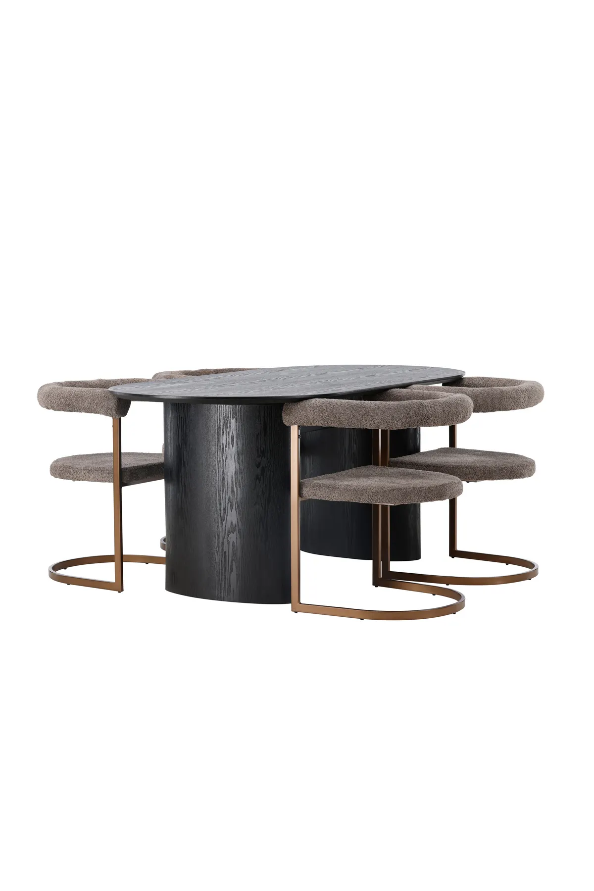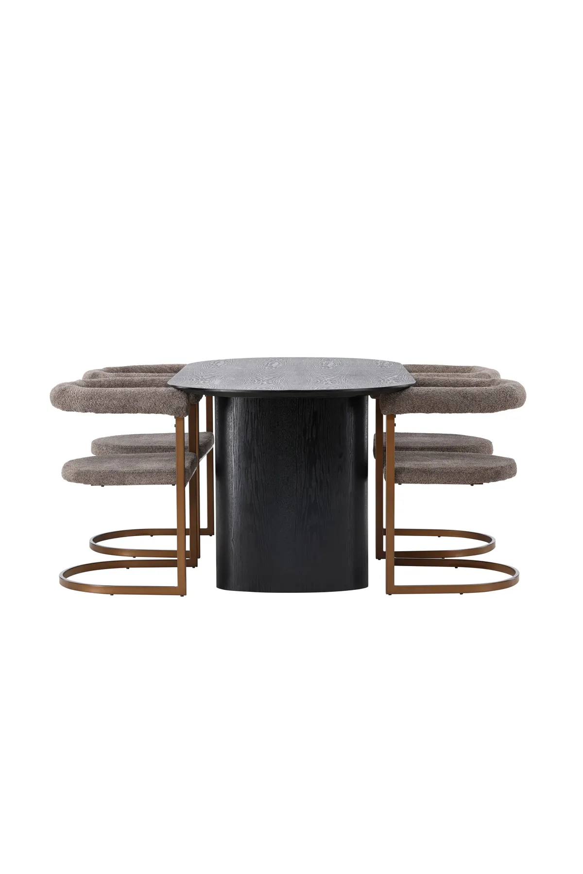 Unser schwarzer ovaler Esstisch Isolde besticht durch sein modernes Design. Die ovale Tischplatte aus furniertem MDF bringt die schönen Muster des Materials zur Geltung, und das robuste Untergestell verleiht dem Mittelpunkt Stabilität. Tischmaße: 180x75cm.