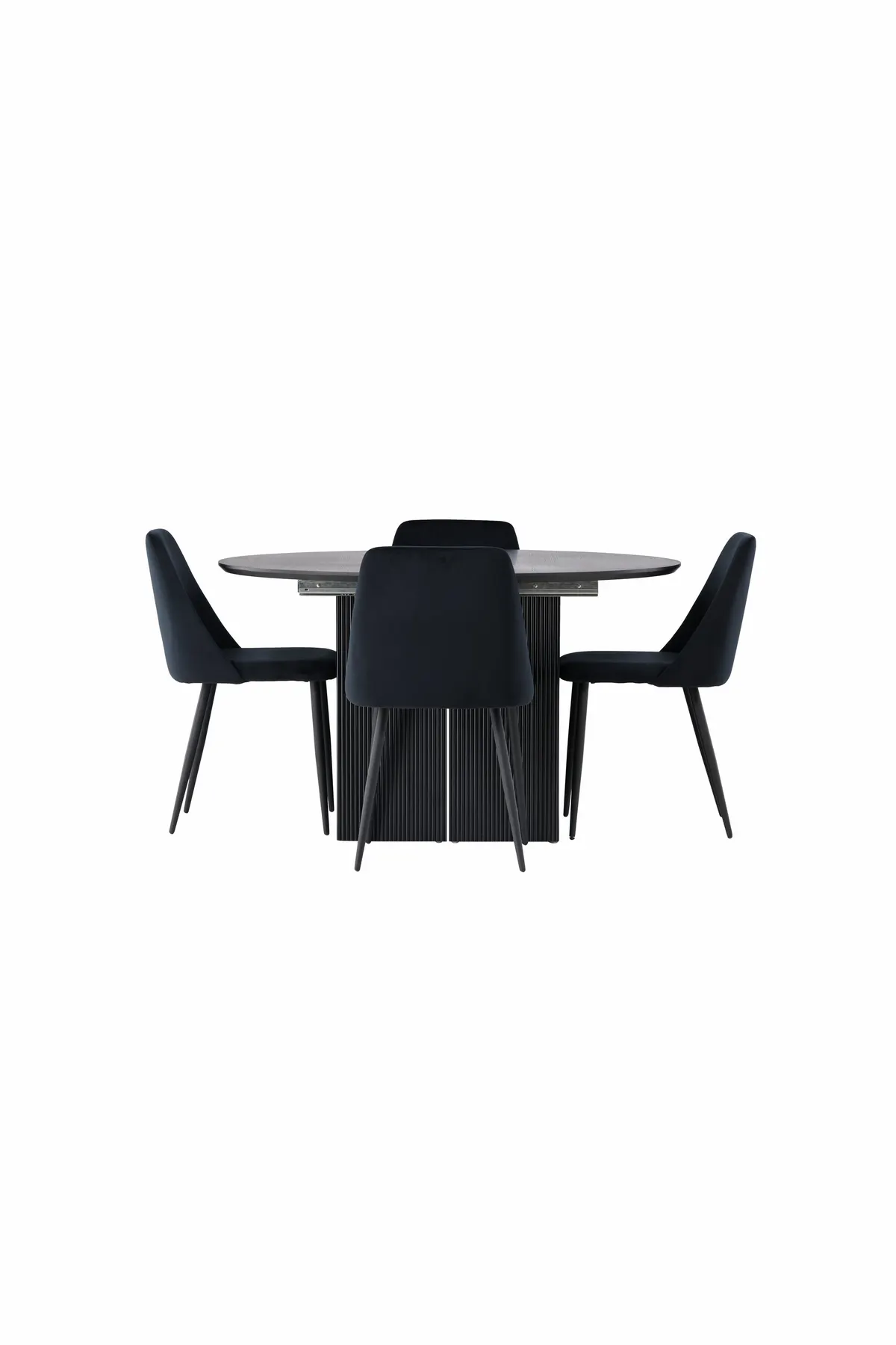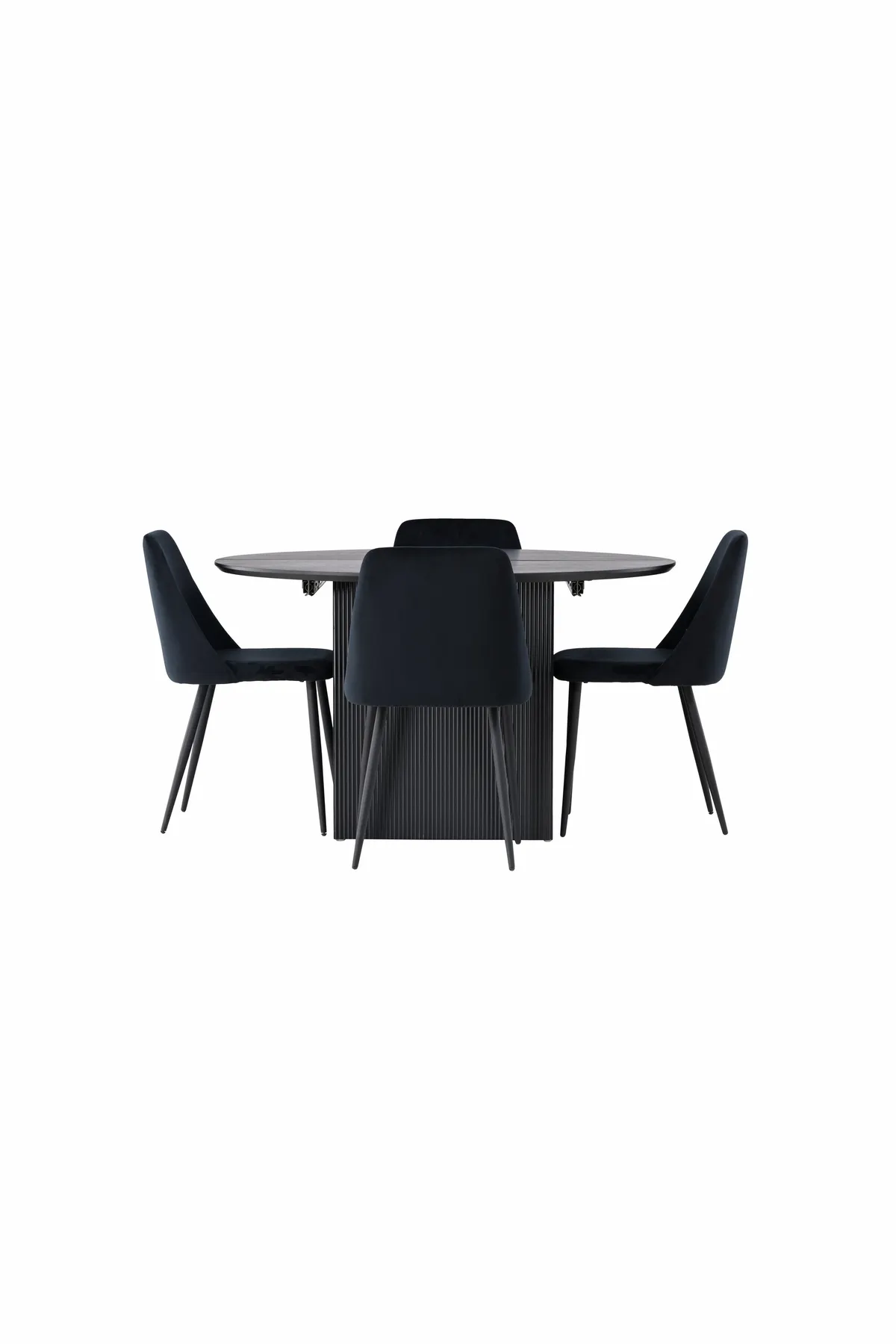 Richten Sie Ihr Zuhause in einem rauchigen Schwarz ein, das dem Test der Zeit standhält und ebenso stilvoll wie praktisch ist – dieses runde Esstischset lässt sich leicht mit dem Rest Ihrer Einrichtung kombinieren!