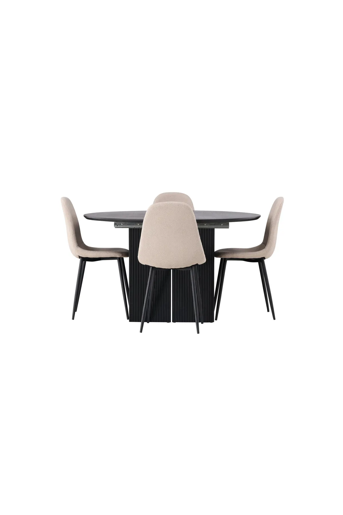 Mit dem Matilda-Esstisch und den Polar-Stühlen erhalten Sie nicht nur ein funktionales Esstisch-Set, sondern auch eine ästhetische Kombination, die Ihr Wohnzimmer zu einem gemütlichen Ort macht. Ob es sich um ein gemütliches Abendessen zu zweit oder eine Party für viele handelt, Matilda und Polar bieten Ihnen die perfekte Umgebung, um gutes Essen und angenehme Gesellschaft zu genießen!