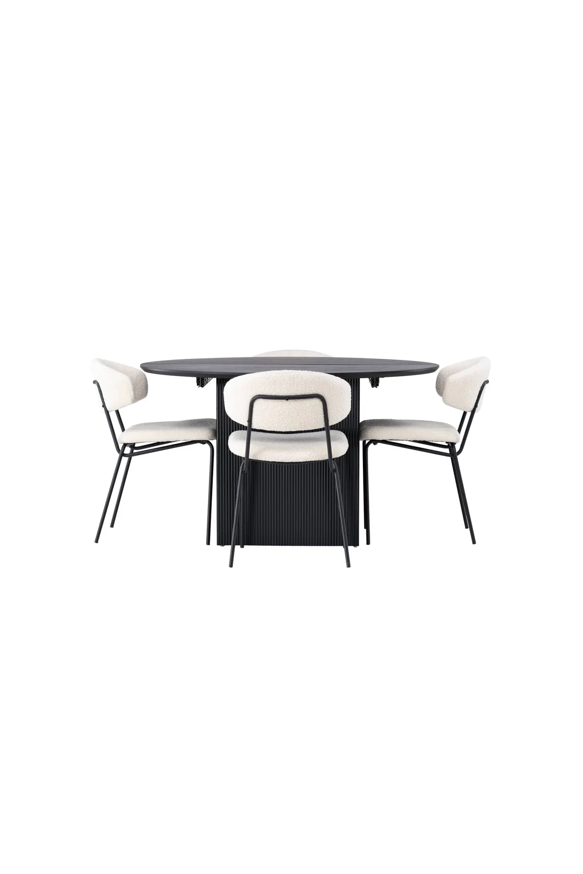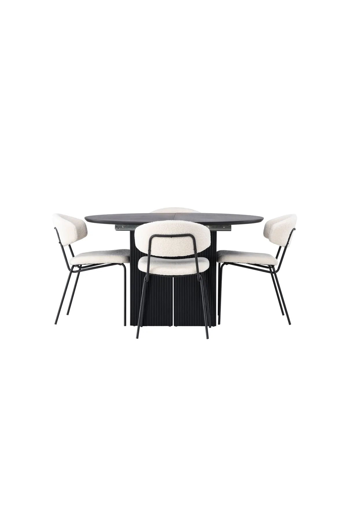 Hier kombinieren wir Stil und Komfort auf die bestmögliche Weise! Dieses skandinavische Esstischset mit weichen Formen und nachhaltigen Materialien schafft schnell einen beeindruckenden Mittelpunkt in Ihrem Zuhause!