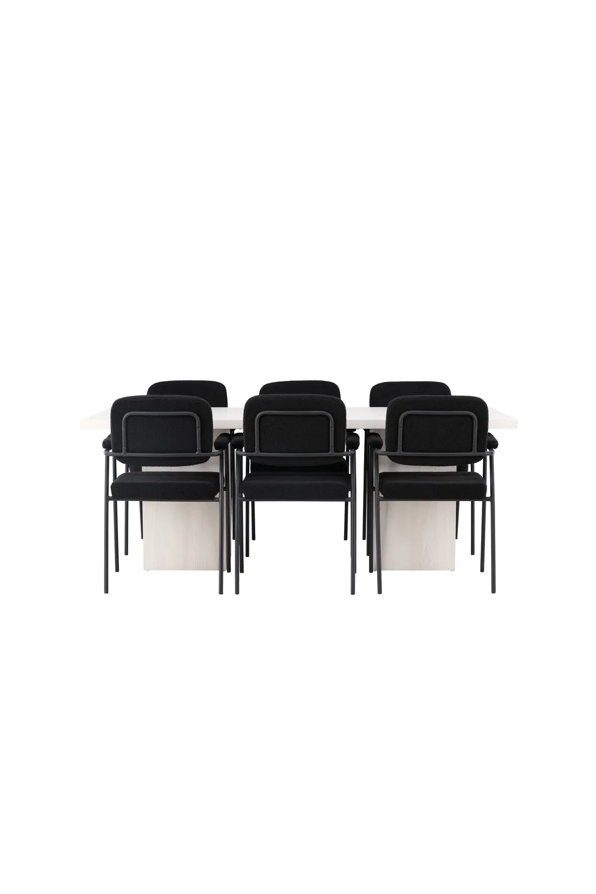 Ergänzen Sie diesen fantastischen Esstisch mit unseren schwarzen Esszimmerstühlen aus der Serie Yesterday. Der schwarze Bouclé-Stoff der Stühle setzt einen raffinierten Akzent und fühlt sich wunderbar weich auf der Haut an. Mit den schlanken Stuhlbeinen und den integrierten schwarzen Metallarmlehnen erhalten Sie nicht nur einen stilvollen und modernen Stuhl, sondern auch zusätzlichen Komfort.