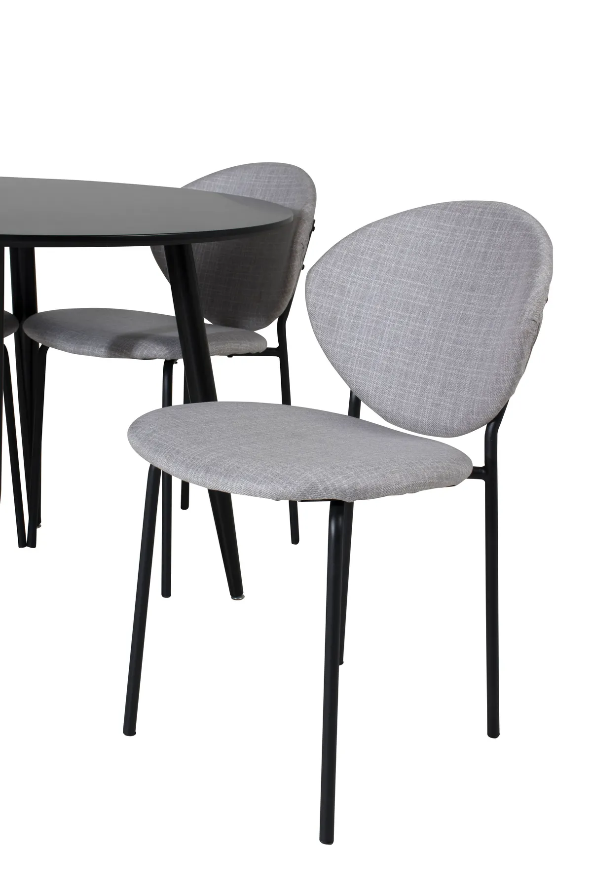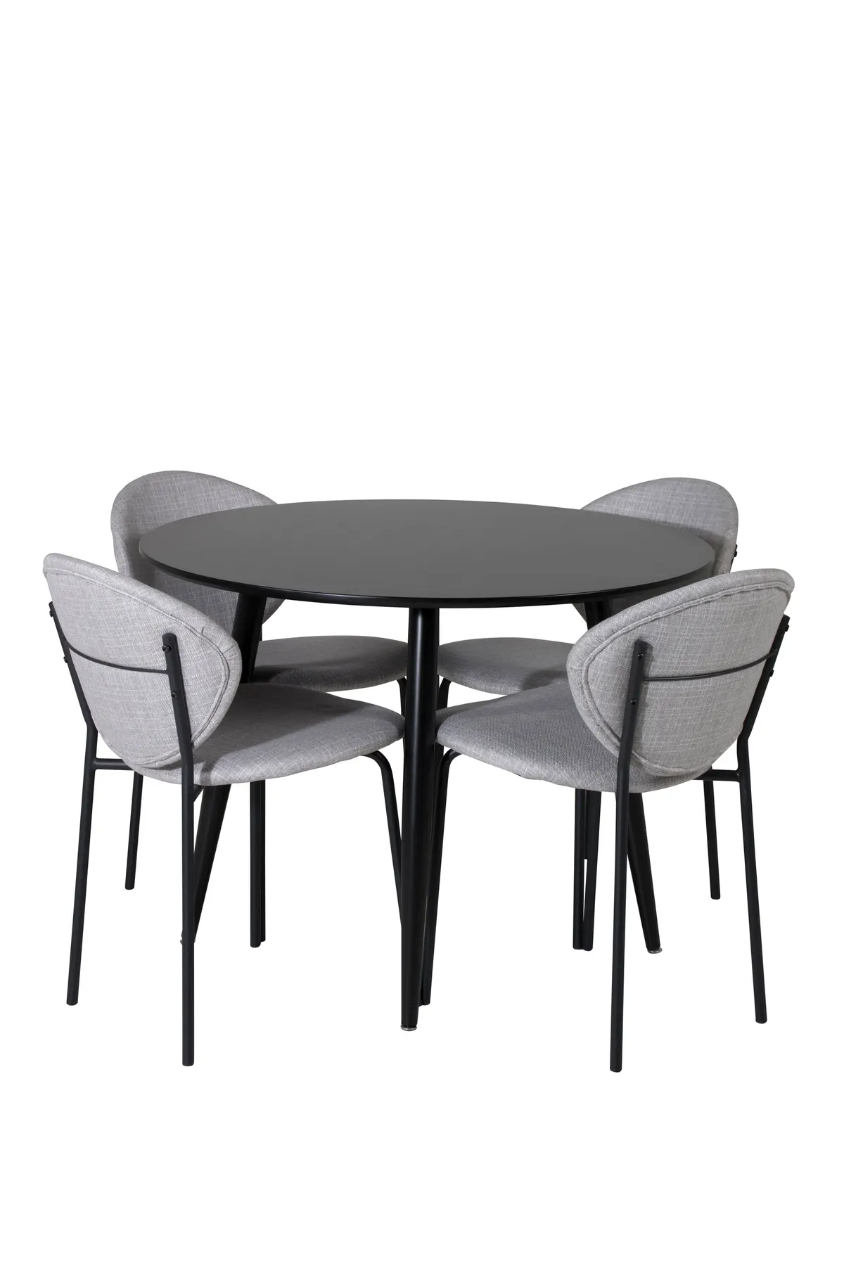 Lassen Sie sich von unserer stilvollen Essgruppe mit praktischem Design inspirieren! Unser runder Esstisch Plaza mit eleganter schwarzer Tischplatte zusammen mit grauen Esszimmerstühlen der Serie Vault ist die perfekte Kombination.