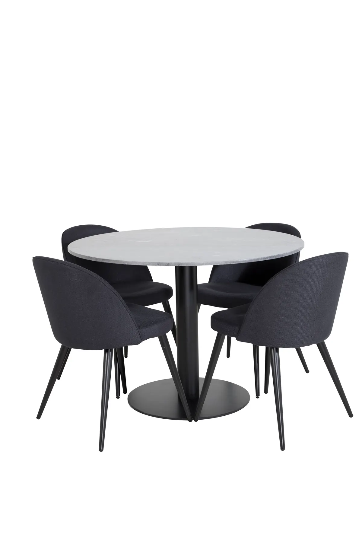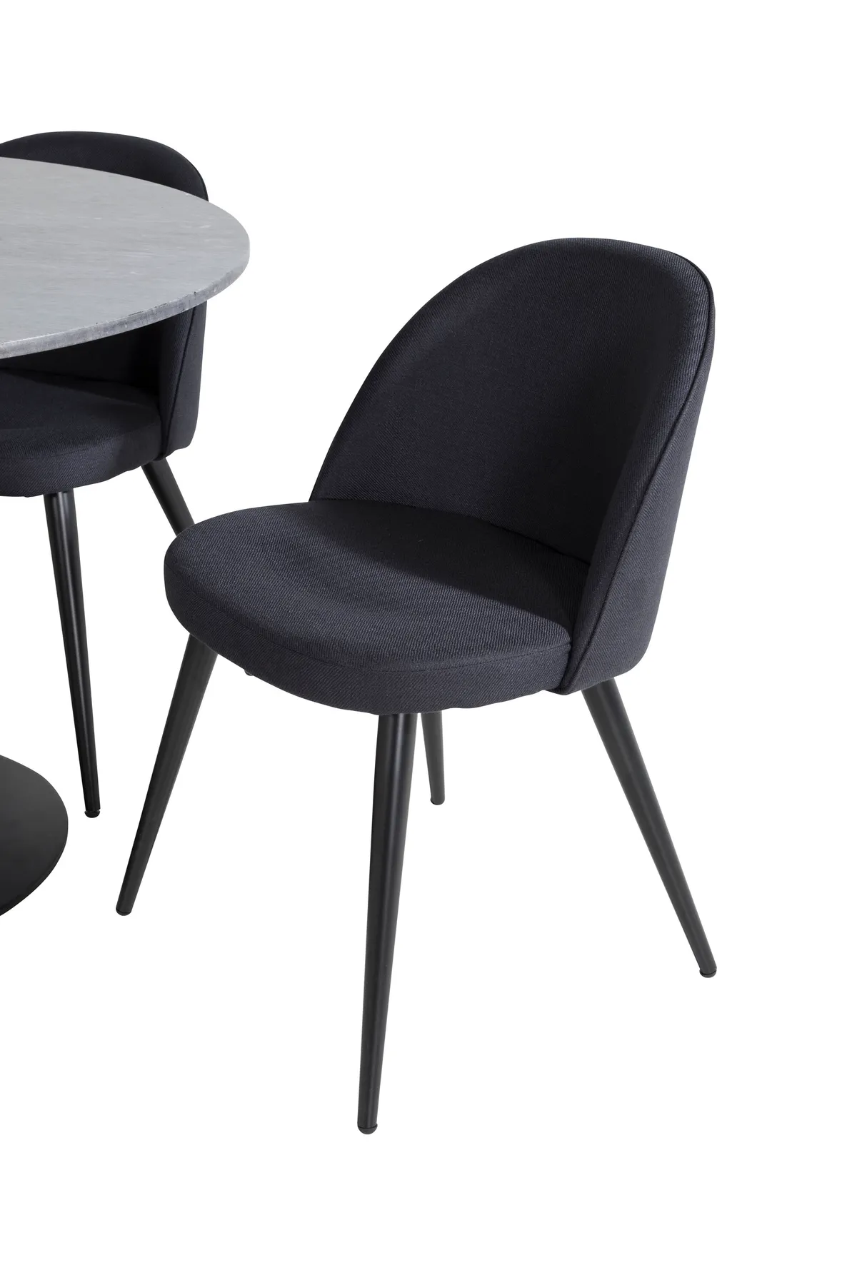 Der stilvolle Esstisch aus schönem Marmor der Serie Estelle zusammen mit den weichen und bequemen Esszimmerstühlen der Serie Velvet. Hier sitzt man gerne lange und genießt die Gesellschaft von guten Freunden!
