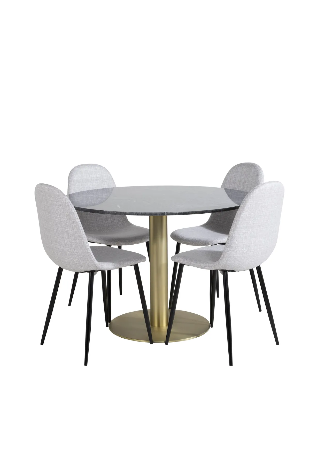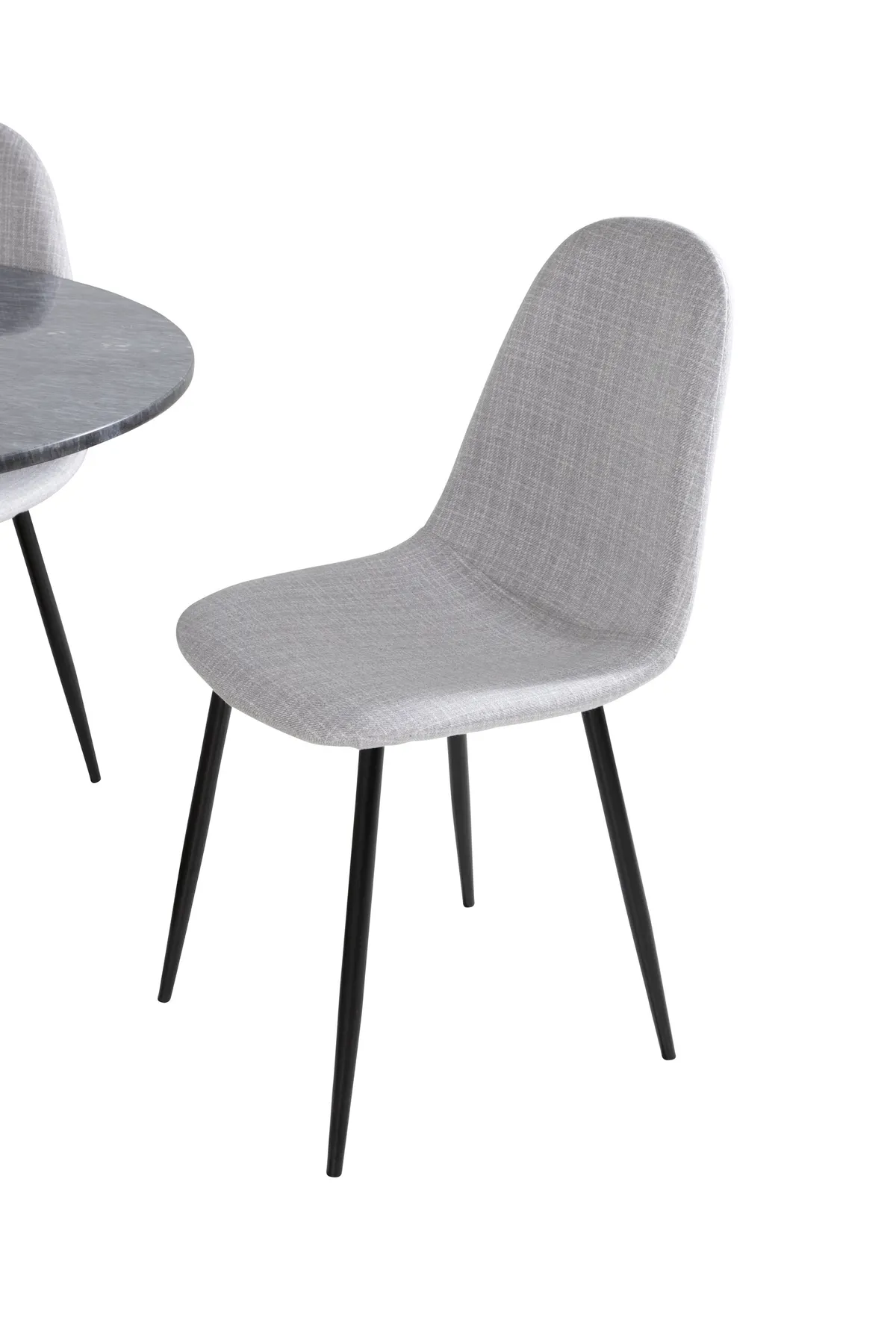 Der elegante Marmor-Esstisch der Serie Estelle wird hier mit den schönen Stühlen der Serie Polar kombiniert. Eine Essgruppe, die Lust auf Zuhause macht!