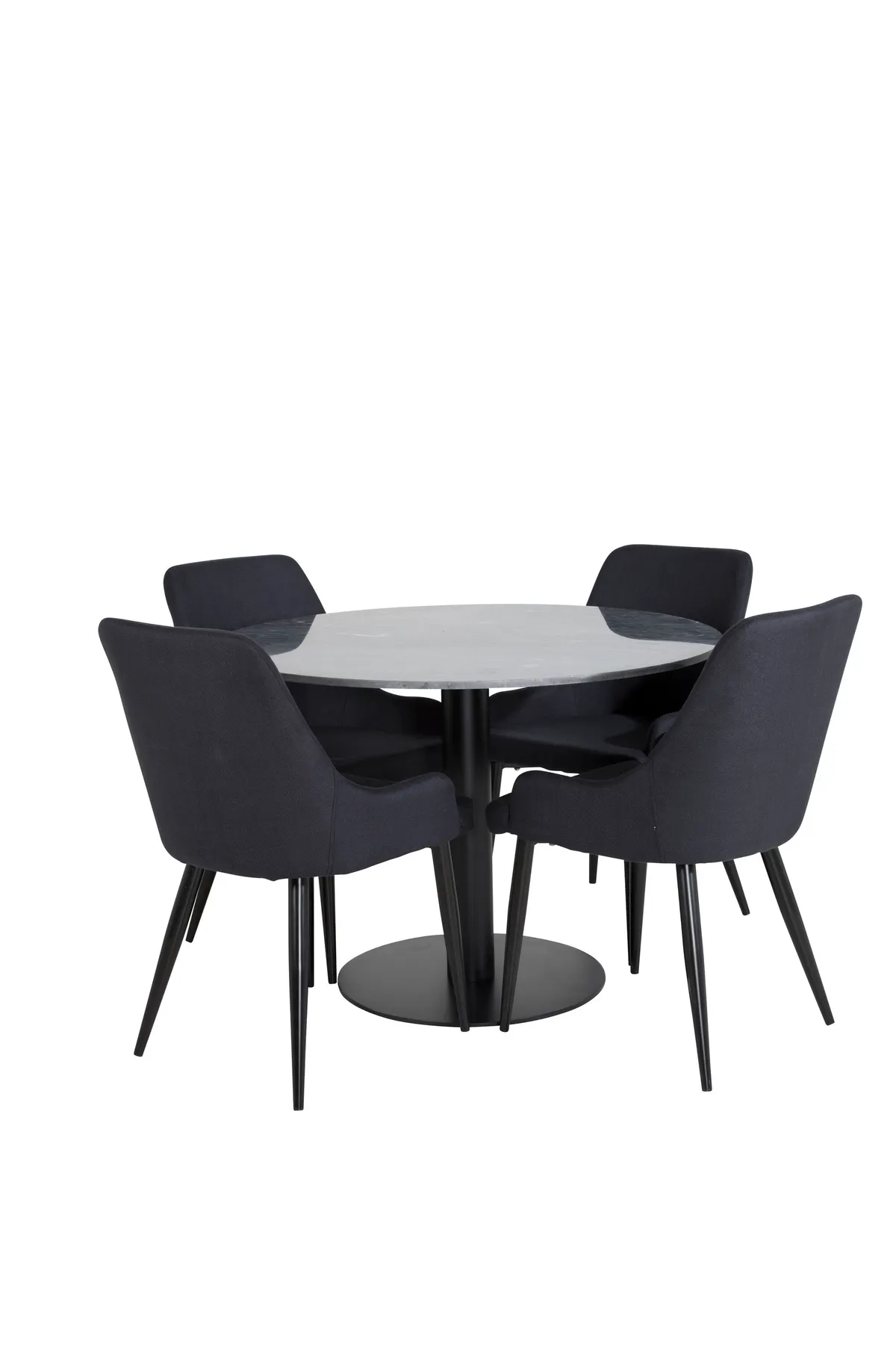 Eine pompöse Essgruppe mit moderner Ausstrahlung! Esstisch Estelle in trendigem Design hat eine herrliche Marmortischplatte. Hier zusammen mit bequemen Esszimmerstühlen der Serie Plaza. Versammeln Sie die Familie und verlängern Sie die gemeinsamen Essensmomente in einer stilvollen und sitzfreundlichen Essgruppe.