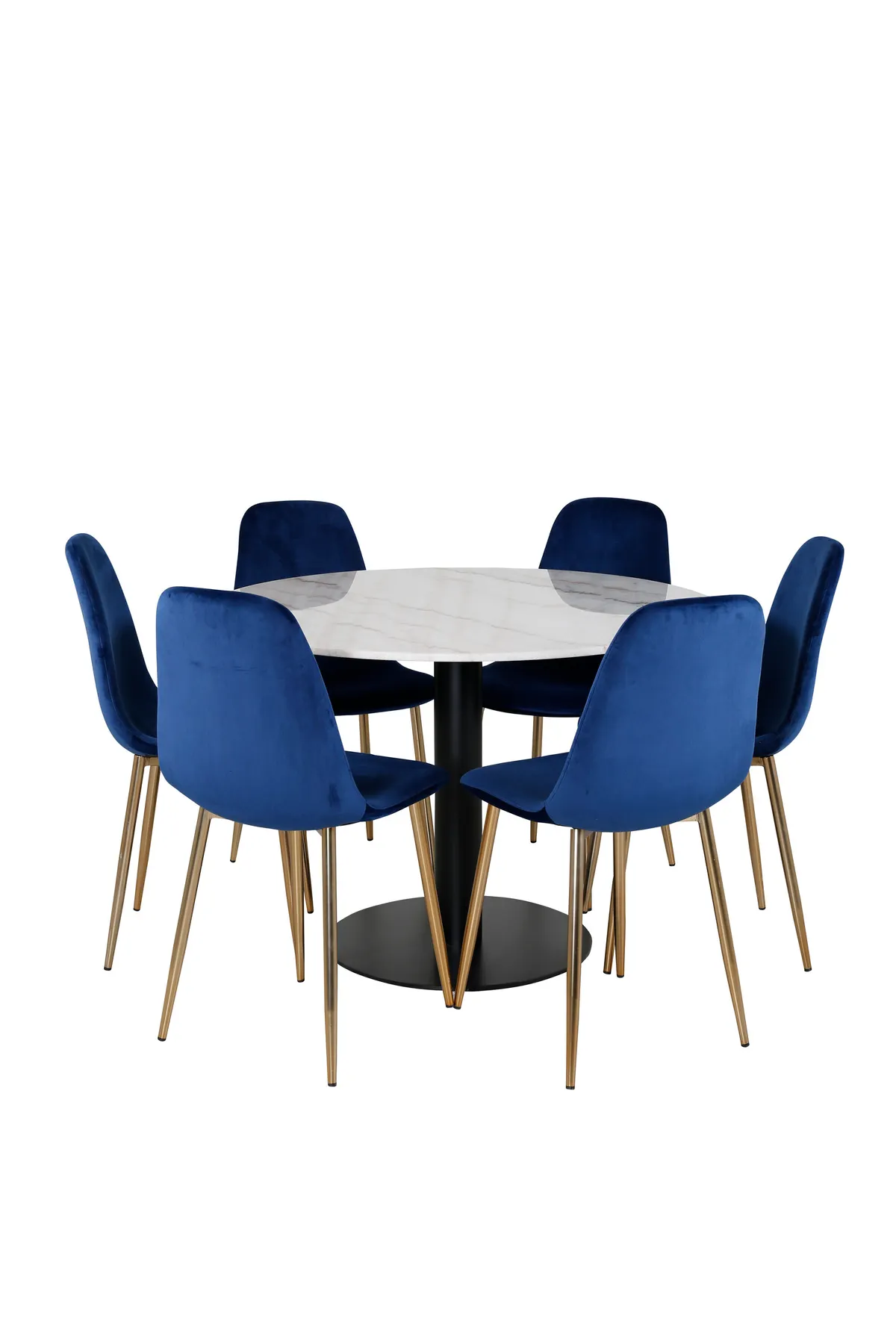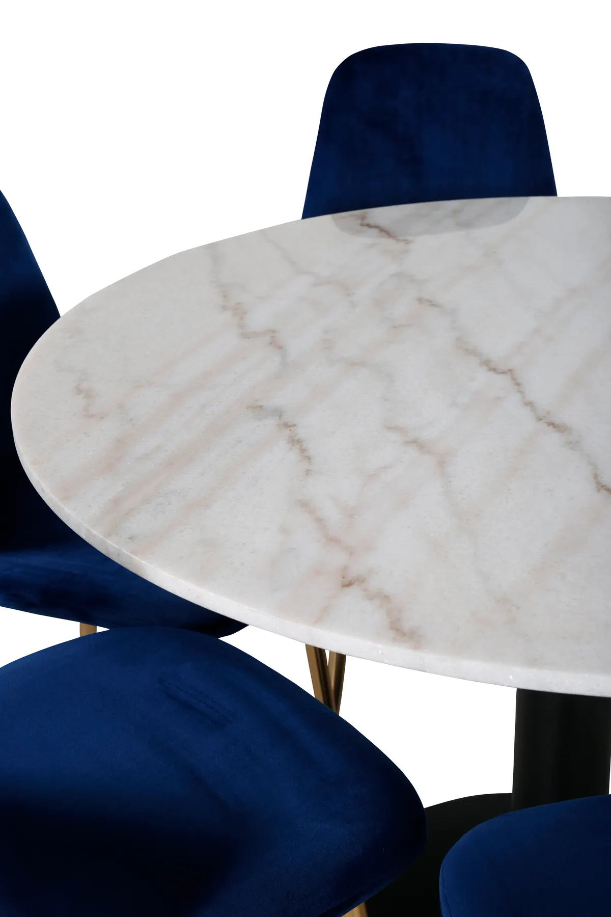 Estelle, der moderne und gepflegte Esstisch – hier zusammen mit den Esszimmerstühlen der Serie Polar. Schaffen Sie etwas Ordentliches und Soziales mit Platz für gutes Essen und Geselligkeit!