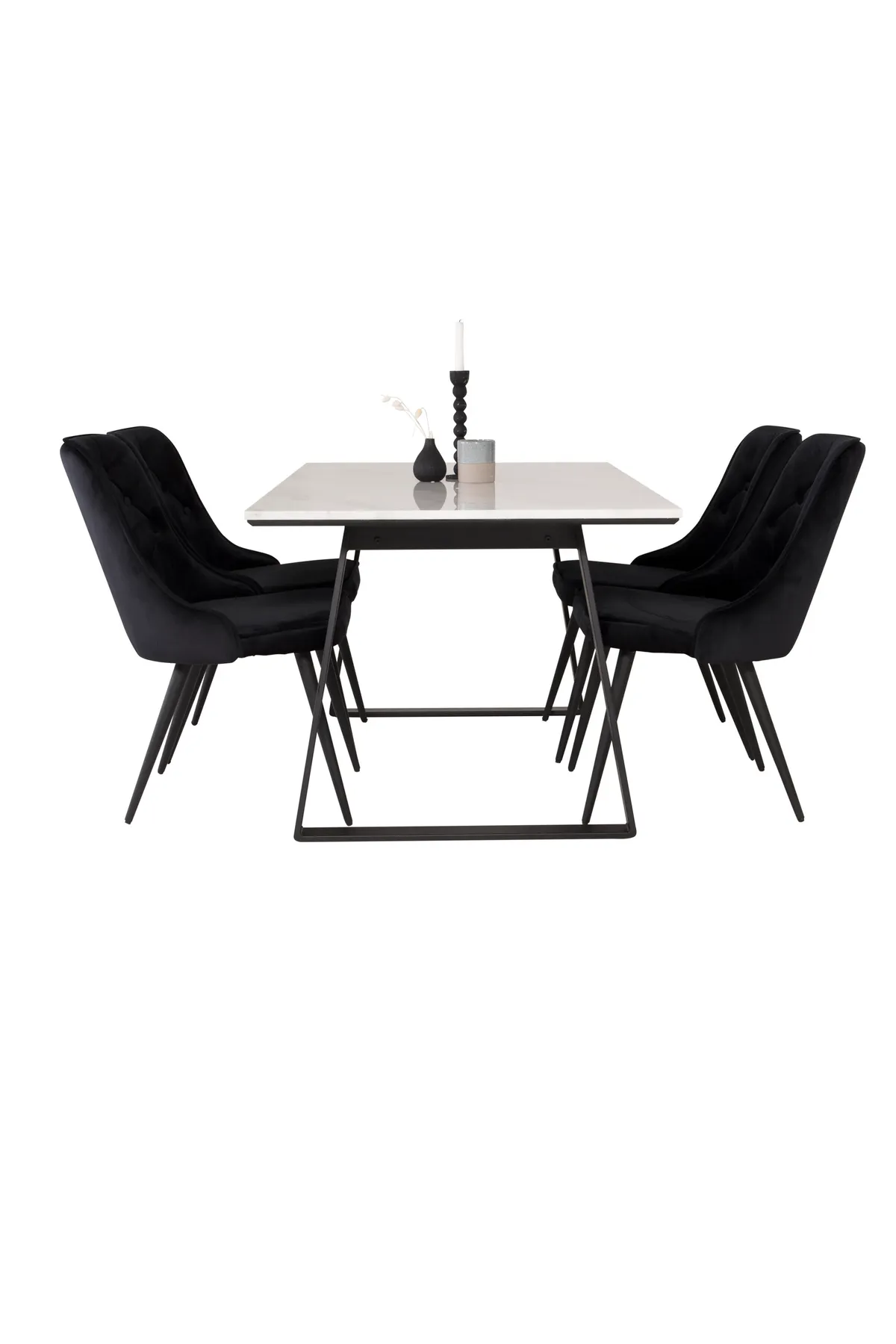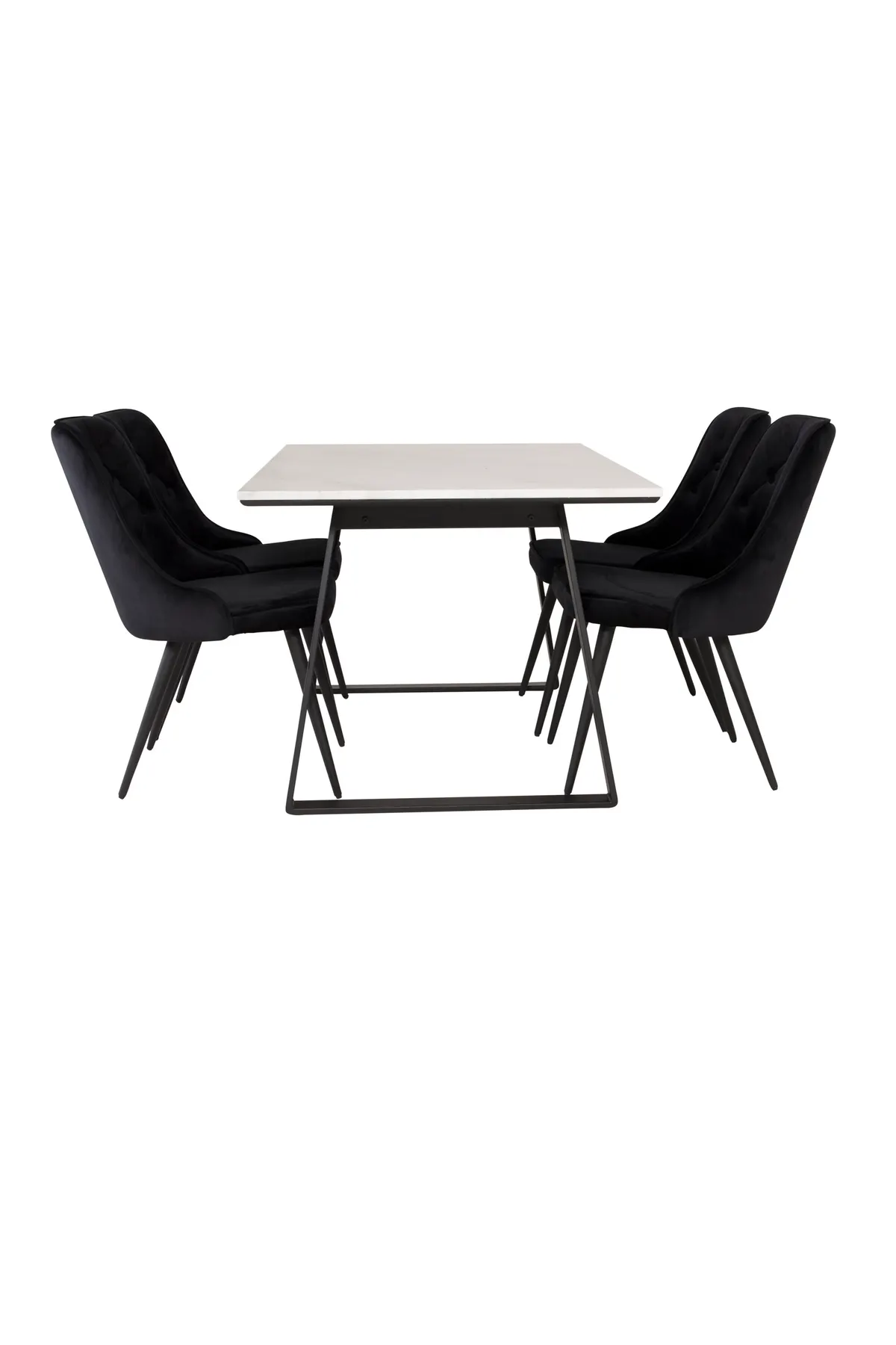 Estelle, moderner und gepflegter Esstisch – hier zusammen mit Esszimmerstühlen aus der Serie Velvet. Schaffen Sie etwas Ordentliches und Soziales mit Platz für gutes Essen und Geselligkeit!