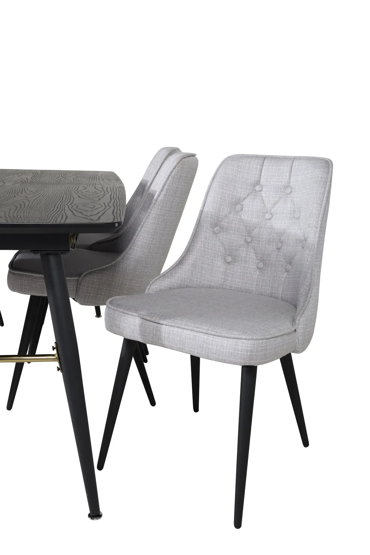 Modern und elegant. Die Kombination aus unserem ausziehbaren Esstisch der Serie Gold und unseren luxuriösen grauen Esszimmerstühlen Velvet schafft eine Essgruppe, die Lust auf Zuhause macht.