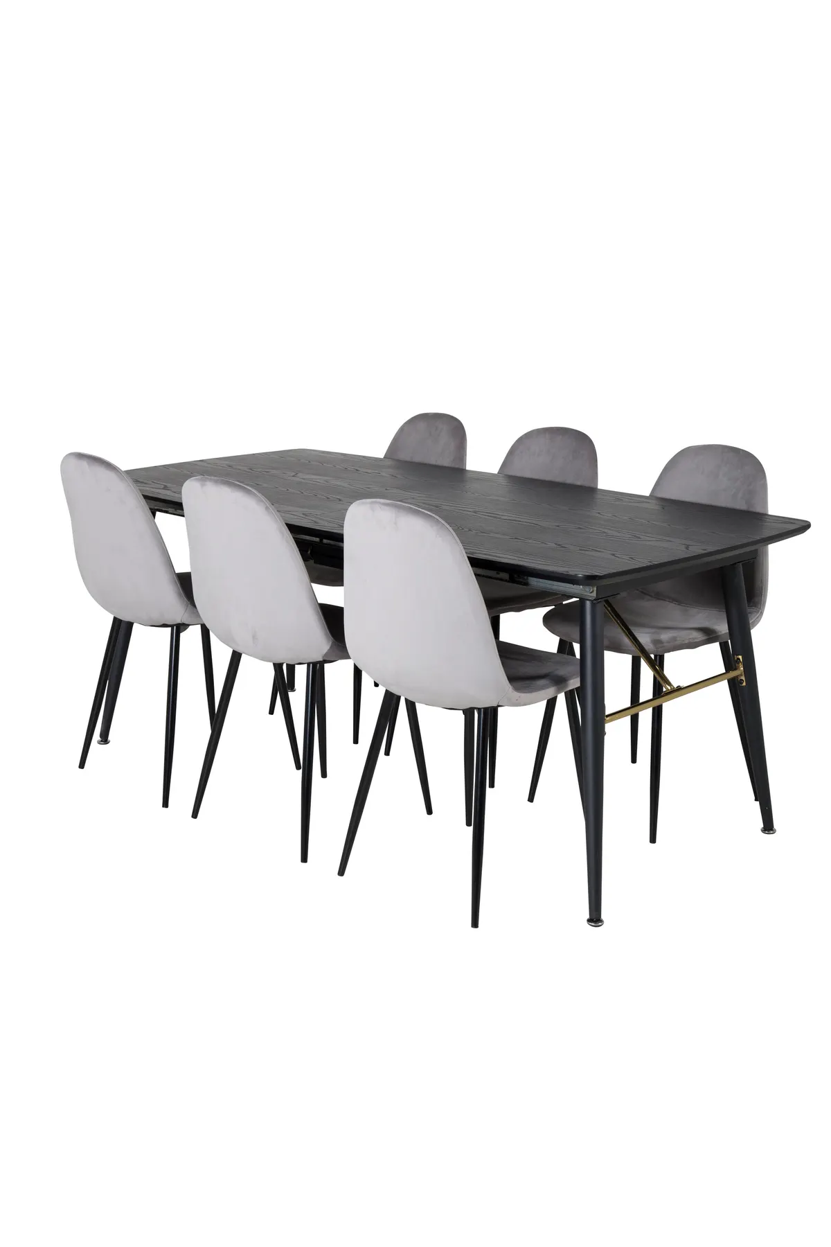 Modern und elegant! Esstisch Gold zusammen mit grauen polaren Esszimmerstühlen gibt Ihnen eine Essgruppe für zu Hause zu sehnen. Der Tisch hat luxuriöse goldene Details an der Unterseite und ist eine Erweiterung ba – die perfekte Kombination für diejenigen, die ein Auge -catching Essgruppe wollen.