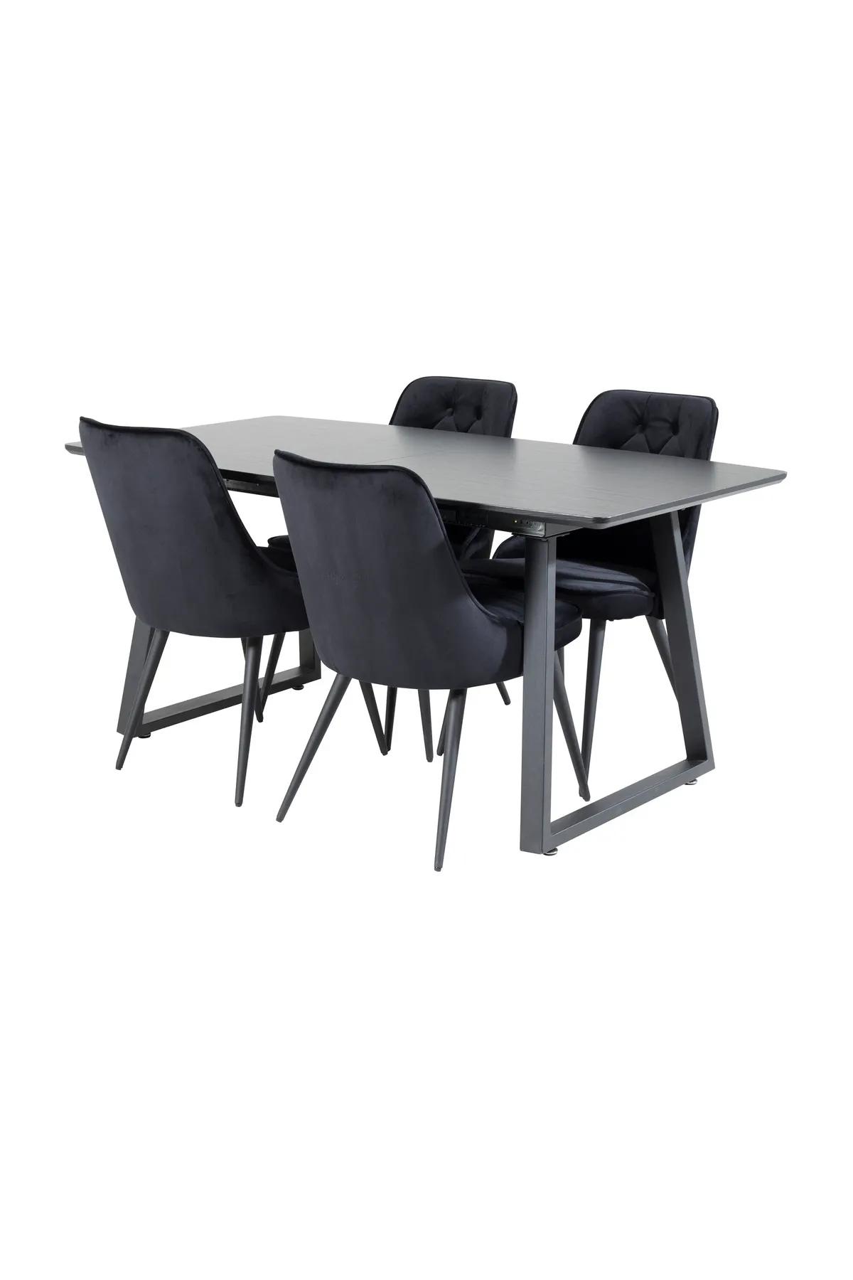 Unsere stilvollen und sitzfreundlichen Esszimmerstühle Velvet in Kombination mit dem Esstisch Inca gehören in die meisten Haushalte. Ein Tisch mit viel Platz zum Essen und geselligen Beisammensein. Einrichten für den Goldrand im Alltag – es soll sich schön anfühlen, nach Hause zu kommen!