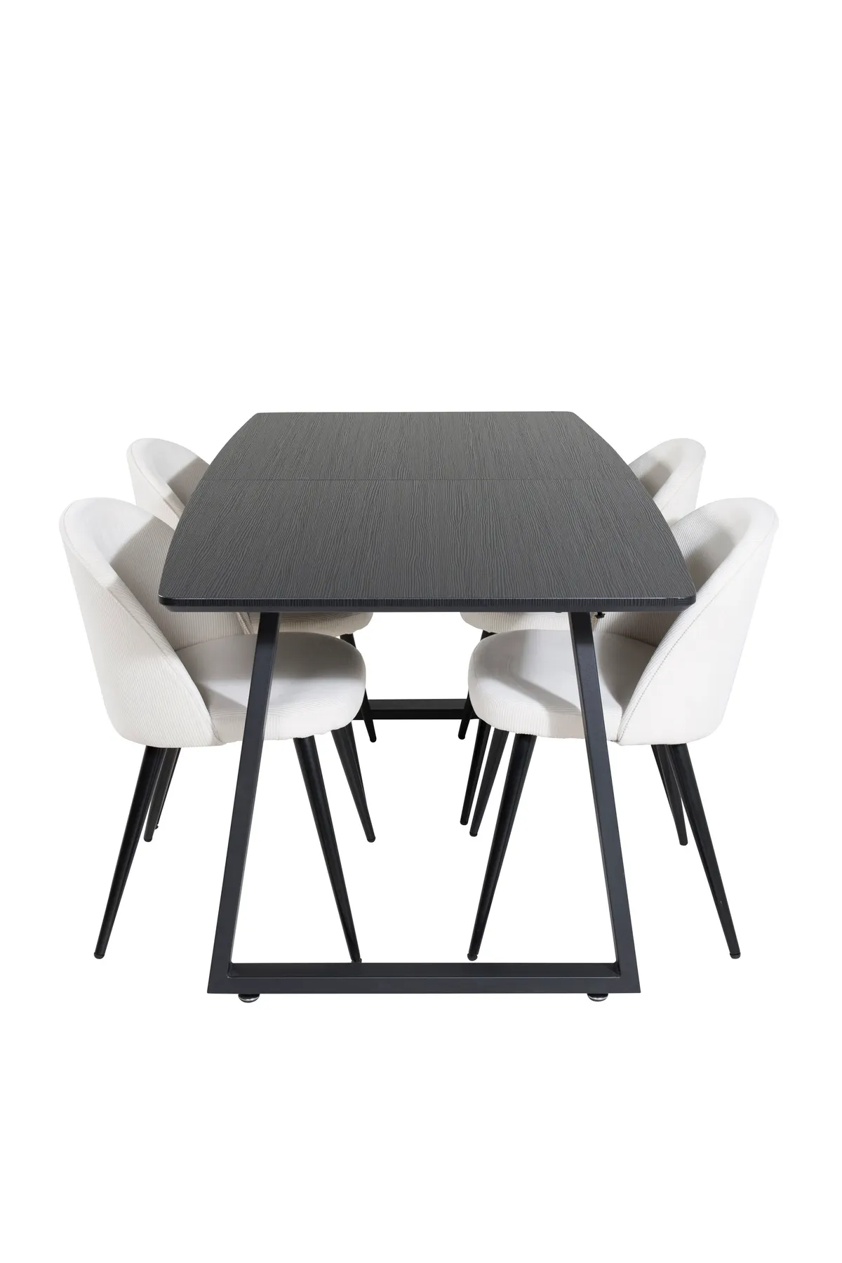 Unsere stilvollen und sitzfreundlichen Esszimmerstühle Velvet in Kombination mit dem Esstisch Inca gehören in die meisten Haushalte. Ein Tisch mit viel Platz zum Essen und geselligen Beisammensein. Einrichten für den Goldrand im Alltag – es soll sich schön anfühlen, nach Hause zu kommen!