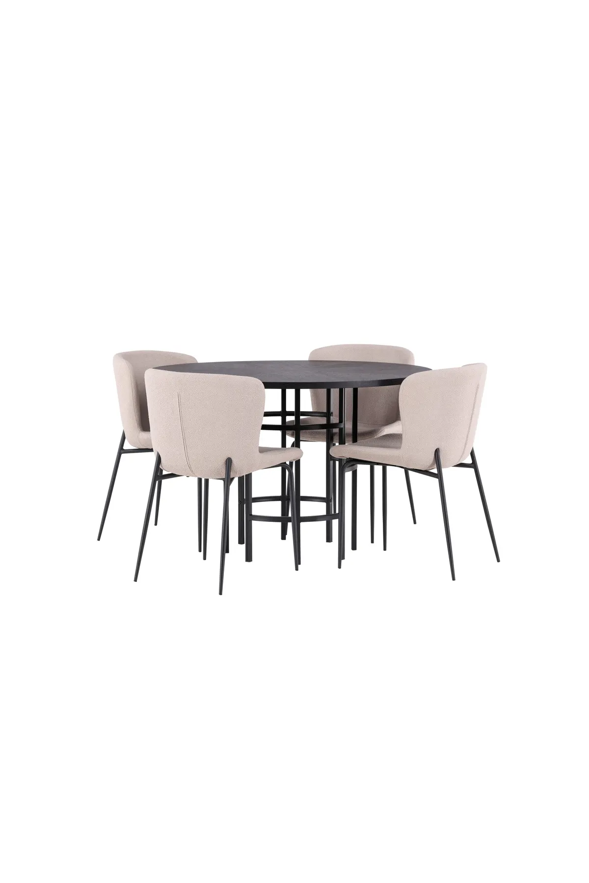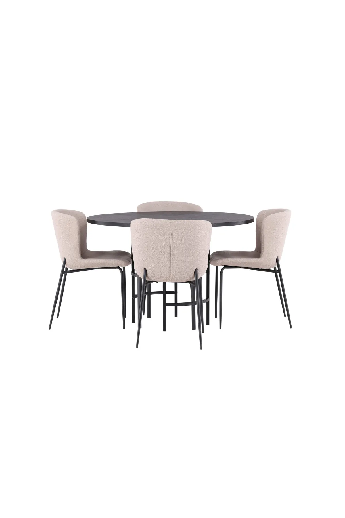 Eine trendbewusste Essgruppe mit weichen Formen! Unser runder Esstisch Copenhagen hat eine elegante, schwarze Tischplatte aus MDF und einen dekorativen, zylinderförmigen Fuß aus schwarzem Metall. Hier in stilvoller Kombination mit unseren trendigen Esszimmerstühlen aus der Modesto-Serie. Der Stuhl ist komplett mit grauem Plüschstoff gepolstert und hat stilvolle schmale Beine aus schwarzem Metall. Die leicht gerundete Rückenlehne und das gepolsterte Sitzkissen sorgen für zusätzlichen Komfort und verlängern angenehme Mahlzeiten rund um den Esstisch. Hier trifft industrielles Design auf weiche Formen! Abmessungen des Tisches: 115cm.
