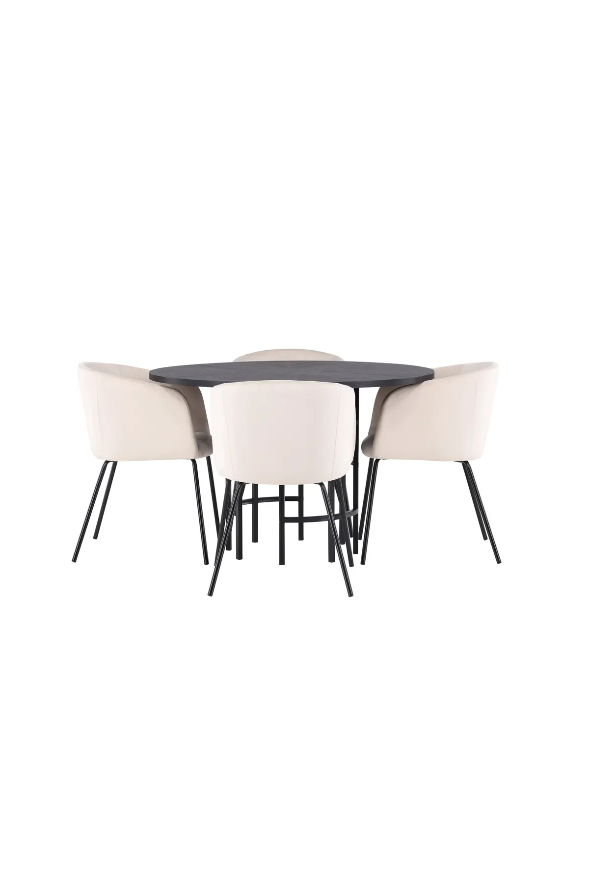 Ebenso stilvoll wie einladend! Unser runder Esstisch Copenhagen hat eine elegante, schwarze Tischplatte aus MDF und einen dekorativen, zylinderförmigen Fuß aus schwarzem Metall. Hier zusammen mit unseren herrlichen Esszimmerstühlen Berit. Der Stuhl ist vollständig gepolstert, hat eine leicht abgerundete Rückenlehne und Sitzfläche aus Samtstoff und schmale Beine aus schwarzem Eisen. Holen Sie sich mit dieser Essgruppe einen schönen Glanz in Ihr Wohnzimmer! Abmessungen des Tisches: 115cm.