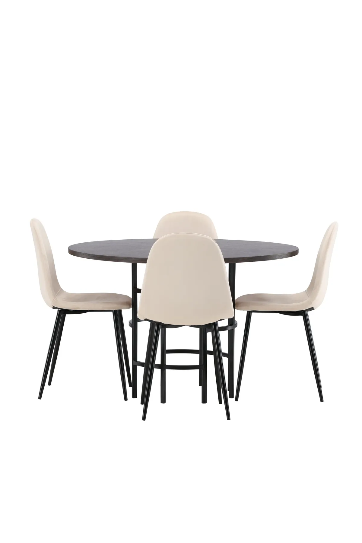 Stilvoll, modern und zeitlos – eine Essgruppe, die beeindruckt! Dieser trendtaugliche Esstisch aus der Serie Copenhagen gehört zur Furniture Fashion Kollektion und hat eine schöne braune Tischplatte aus MDF mit Furnier und einen dekorativen, zylinderförmigen Fuß aus schwarzem Metall. Hier zusammen mit unseren bequemen Esszimmerstühlen aus der Serie Polar. Der Stuhl hat ein vollgepolstertes Design mit einer abgerundeten Rückenlehne und Sitzfläche aus beigem Samtstoff mit weicher Polsterung und Beinen aus schwarzem pulverbeschichtetem Metall. Gehen Sie keine Kompromisse zwischen Komfort und Design ein!