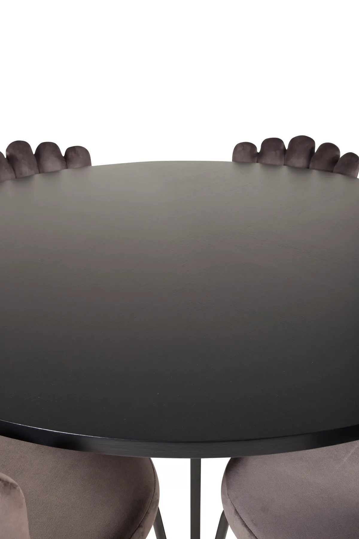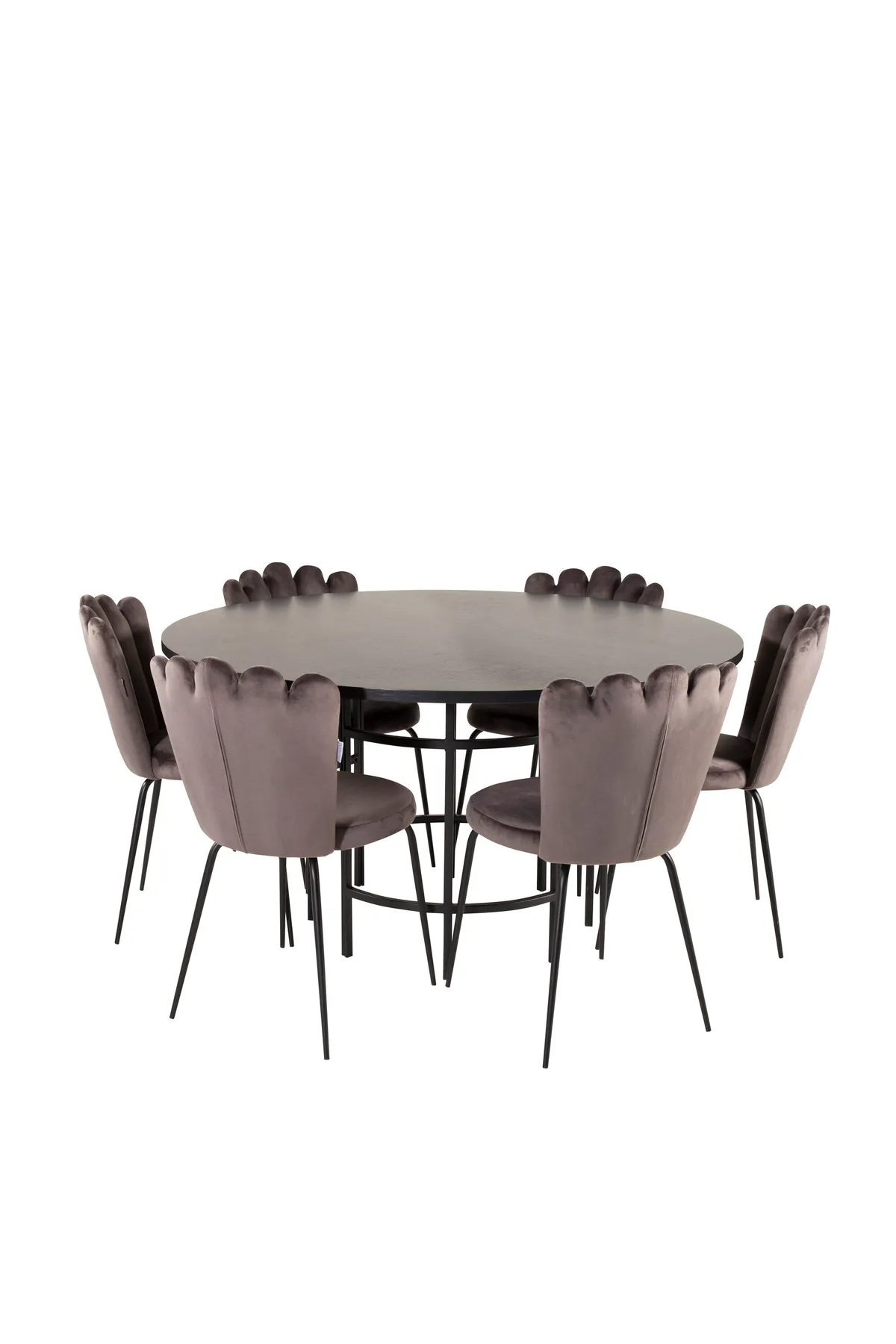 Runde Essgruppe mit schöner Ausstrahlung aus der Furniture Fashion Kollektion. Hier werden Materialien und Farben zu einer fantastischen Kombination zusammengefügt. Tisch Copenhagen in Schwarz zusammen mit grauen Esszimmerstühlen aus der Limhamn-Serie. Die einzigartigen Rückenlehnen der Stühle verleihen der Essgruppe einen einzigartigen Ausdruck.
