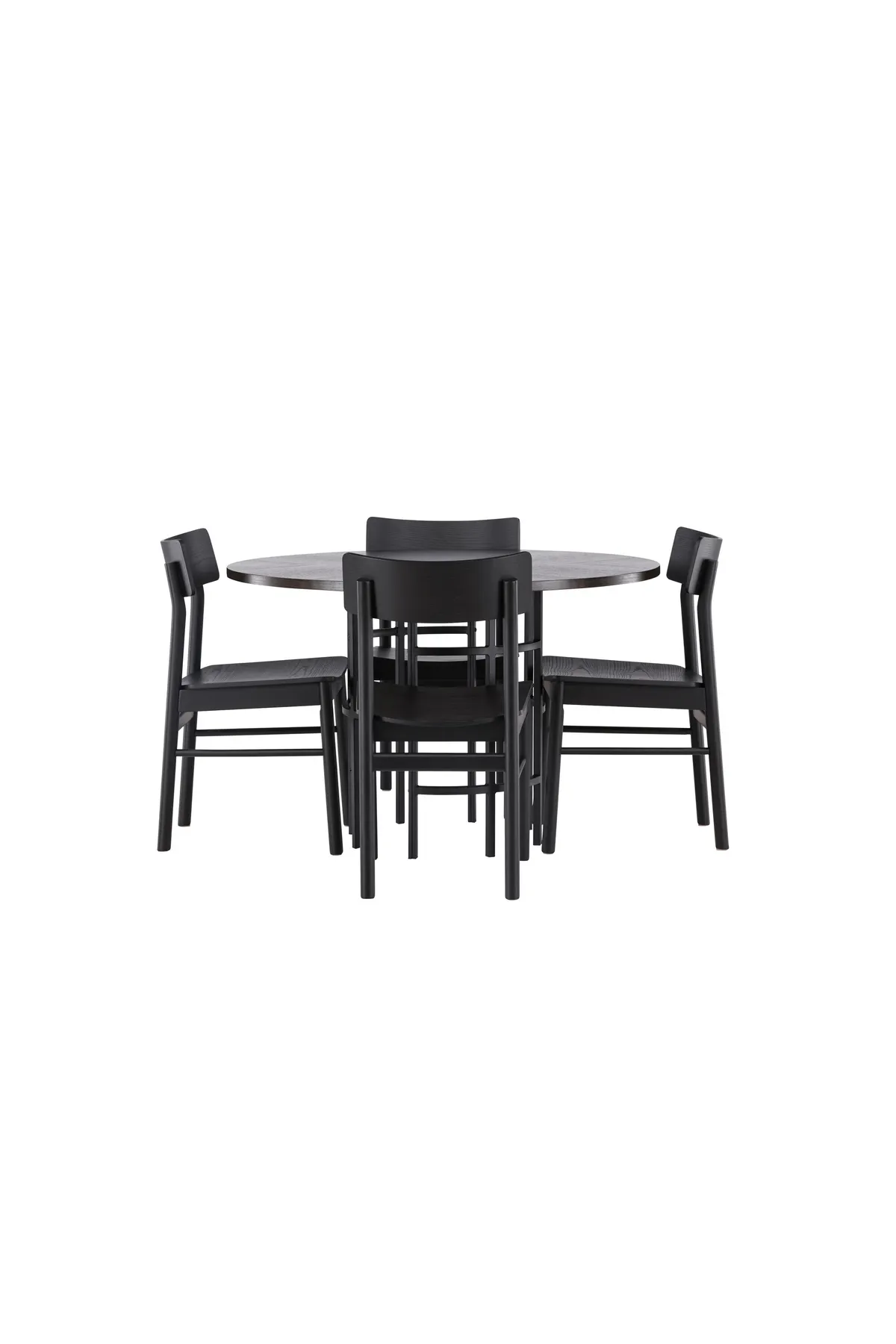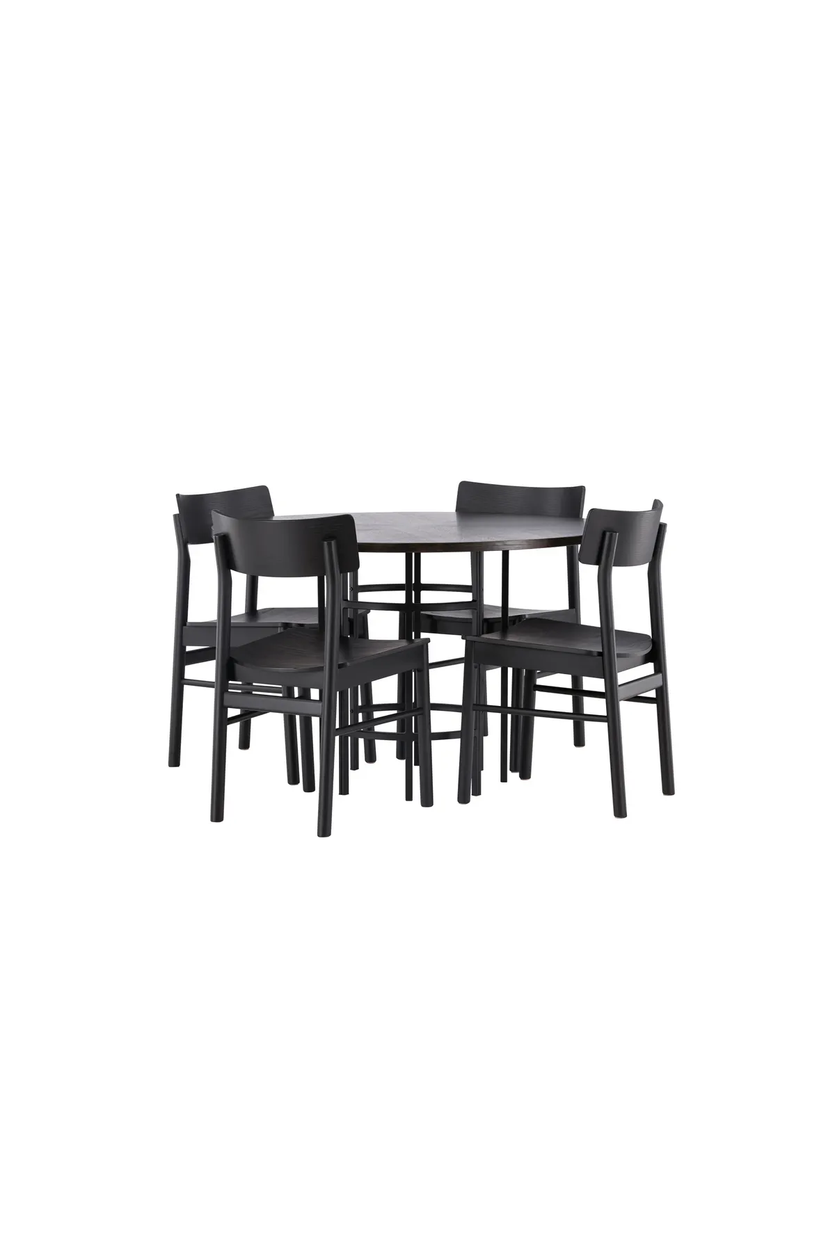 Die Montros-Stühle ergänzen den Tisch perfekt mit ihrem schlichten und eleganten Design. Sie sind aus Birkenholz gefertigt und in einem raffinierten Schwarz gehalten, das dem gesamten Esstisch eine zeitlose und elegante Note verleiht. Diese Stühle bieten außerdem ein bequemes Sitzerlebnis für lange und entspannte Mahlzeiten mit Familie und Freunden.