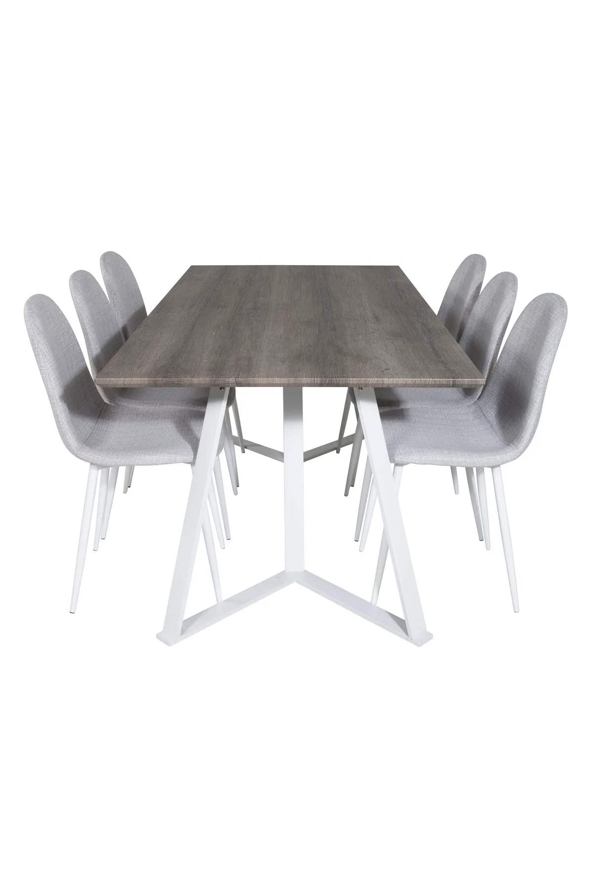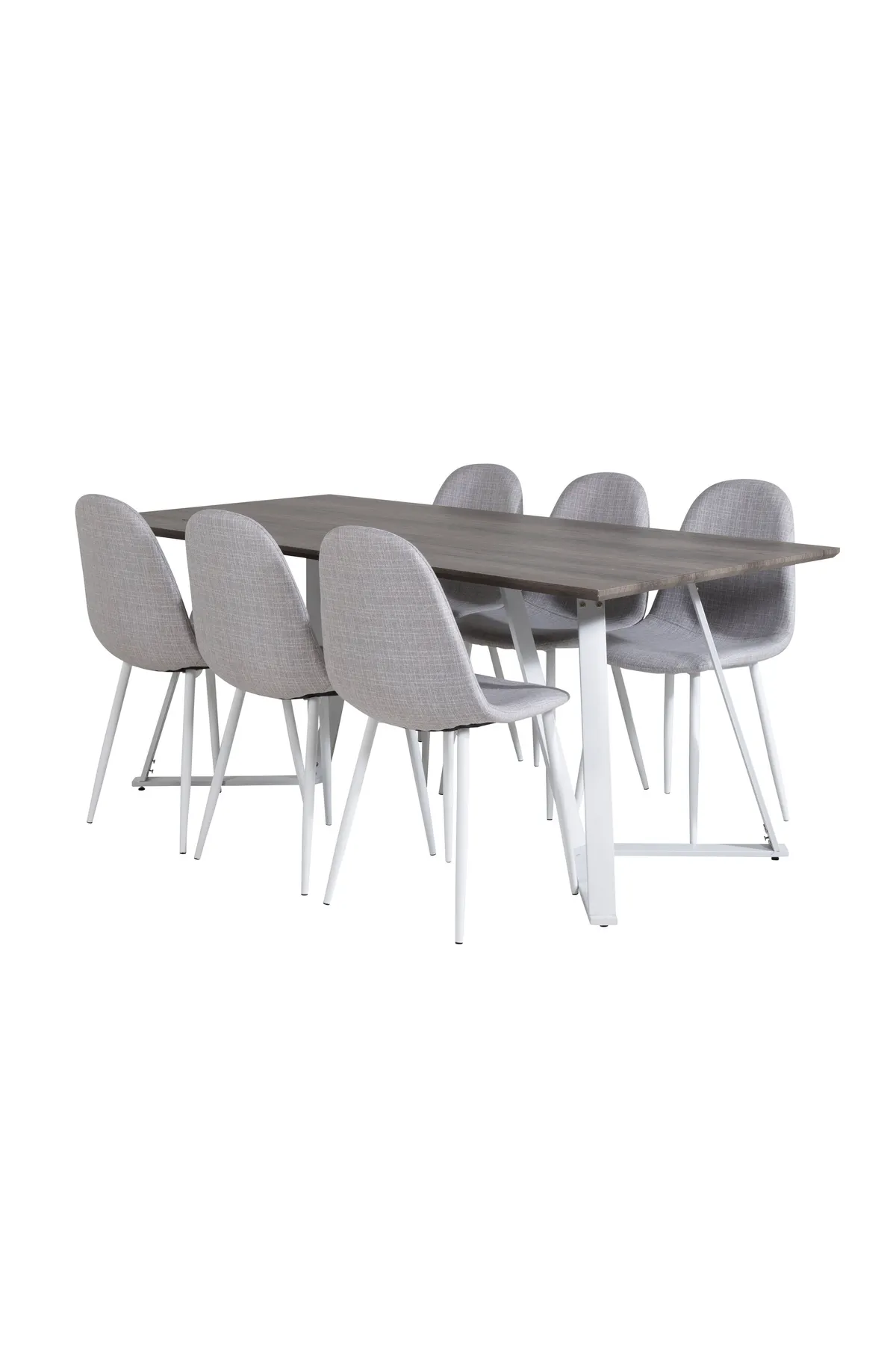 Marina Esstisch in einem hellen Design zusammen mit Esszimmerstühlen polar in hellgrauem Stoff. Eine Lebensmittelgruppe, die ein natürlicher Teil Ihres Hauses sein will.