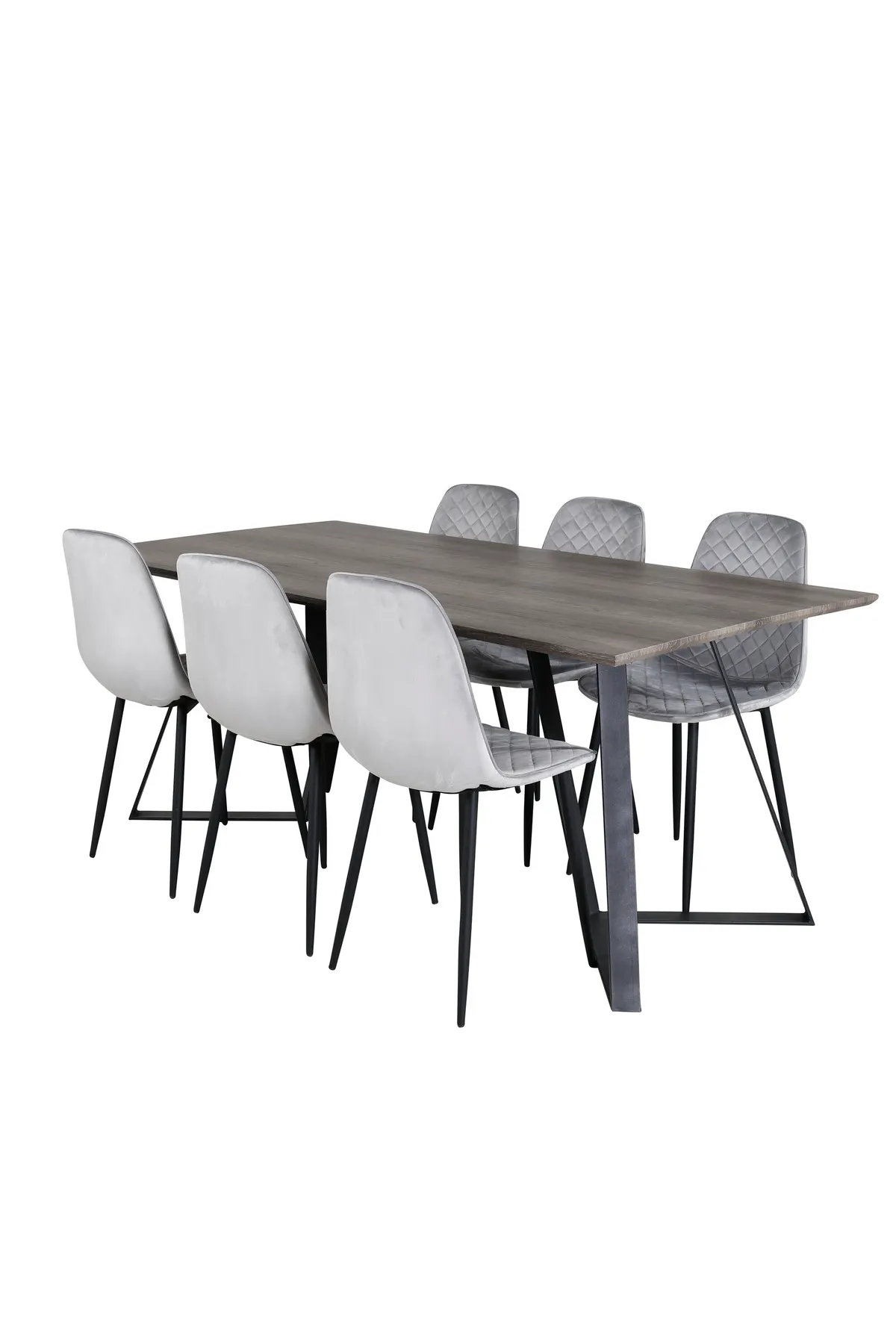 Richten Sie das Wohnzimmer mit einer modernen Essgruppe ein, die einladend und familiär wirkt. Hier wird der Esstisch marina im klassisch-rustikalen Stil mit motivierten Samtstühlen der Serie Polar kombiniert. Lassen Sie die Zeit am Esstisch zu einem der Highlights des Tages werden!