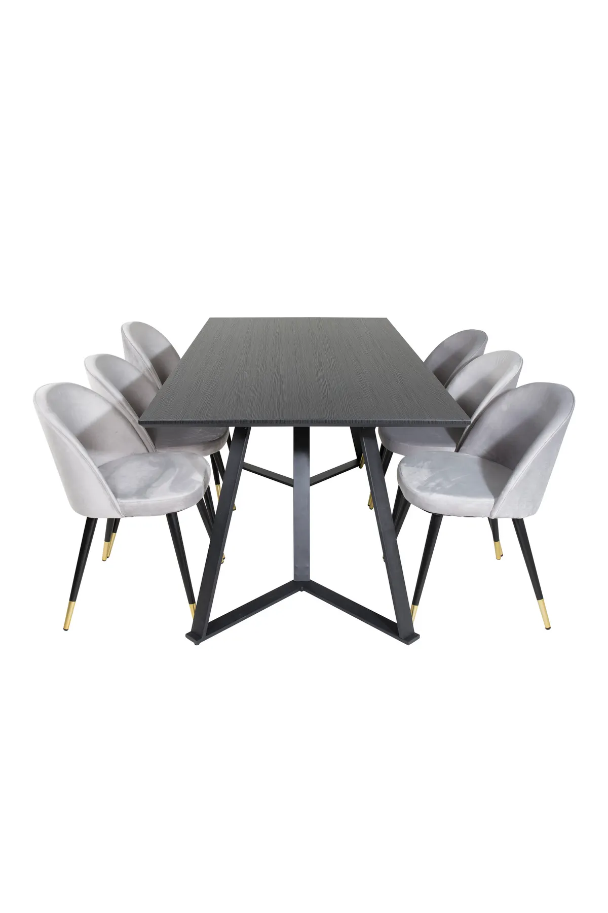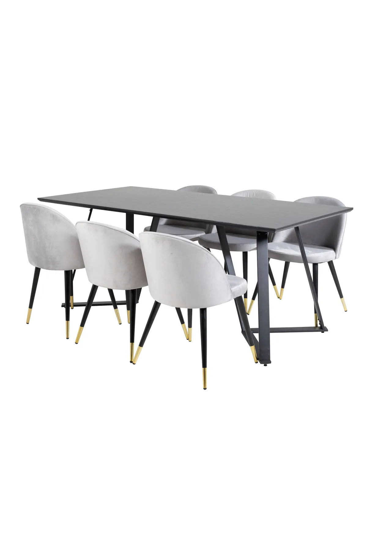 Eine fertig zusammengestellte Essgruppe zu kaufen ist sowohl trend-sicher als auch praktisch! Hier kombinieren wir unseren Esstisch Marina mit unseren luxuriösen Esszimmerstühlen Velvet. Lassen Sie das Herz Ihres Zuhauses von Ihrer neuen, auffälligen Essgruppe prägen.