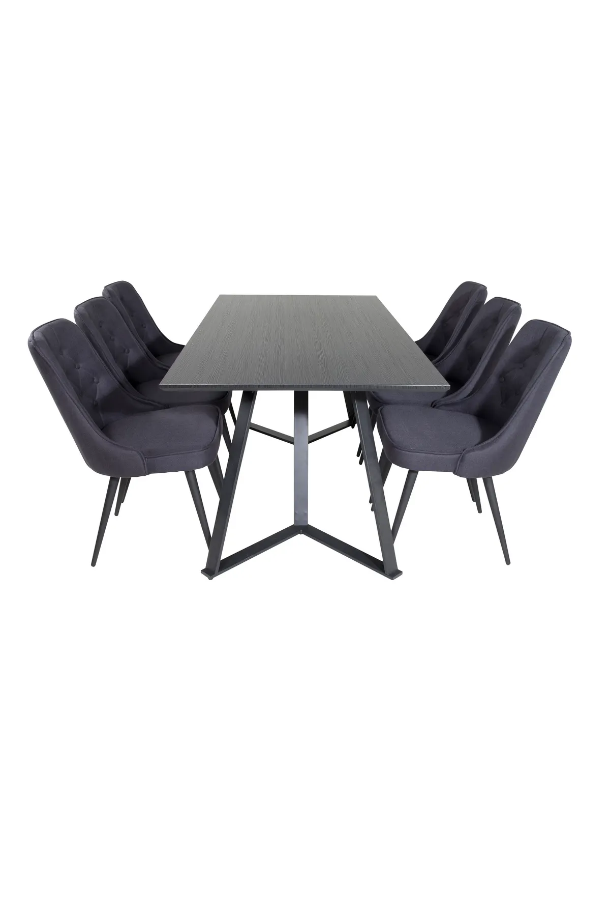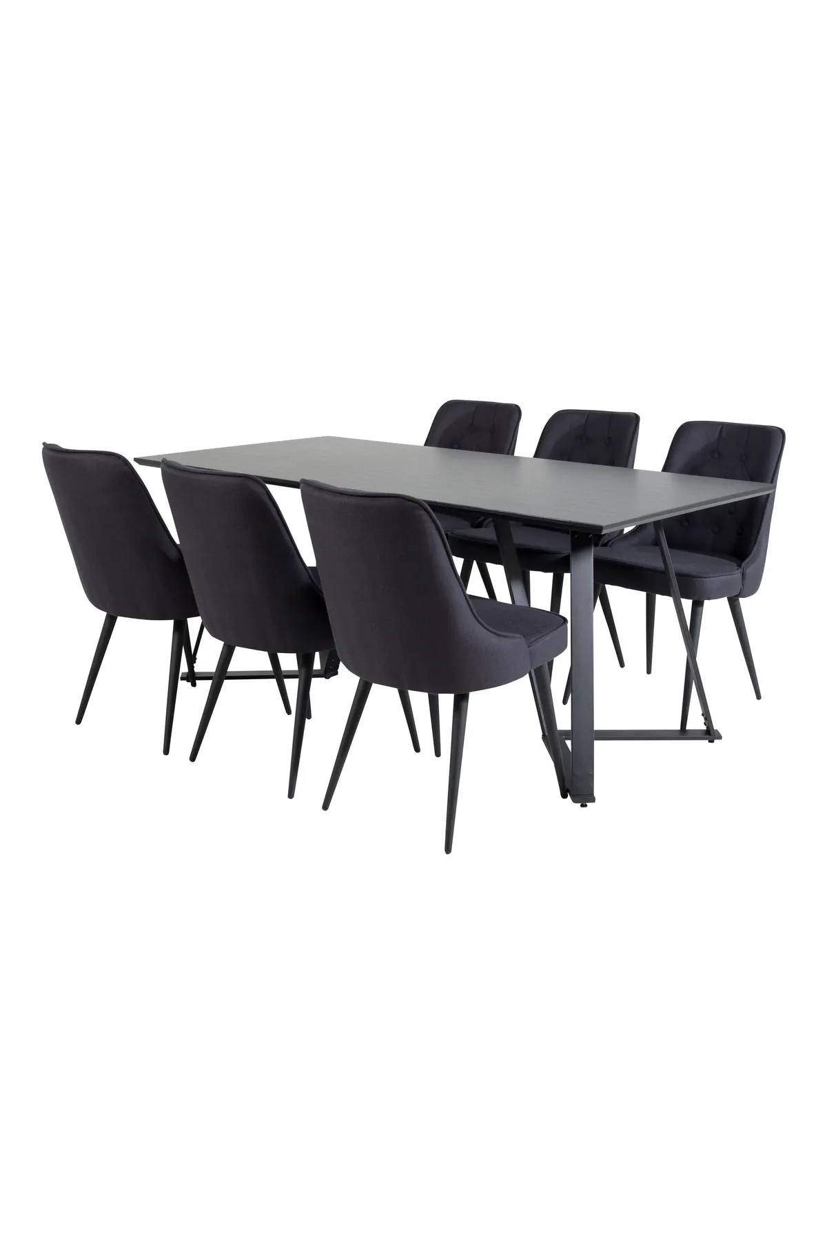 Der stilvolle Esstisch marina mit einer MDF-Tischplatte und einer dekorativen Metallunterwäsche wird hier mit den samtigen Esszimmerstühlen kombiniert. Die Stühle sind stabil und gut gewachsen – hier sitzt man gerne lange und genießt die Gesellschaft von guten Freunden!