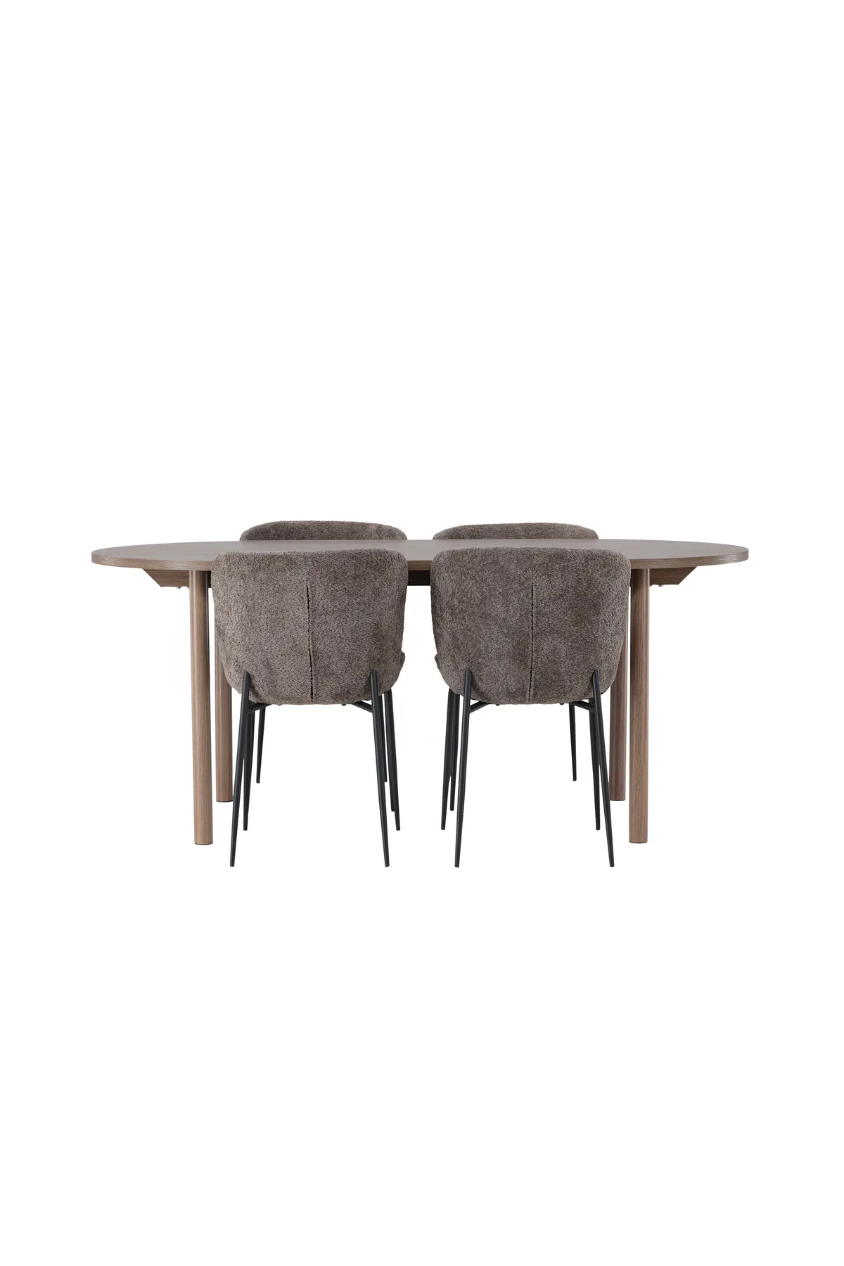 Zusammen mit unserem ovalen Esstisch stammen die Stühle aus der Serie Modesto. Mit ihrem skandinavischen Design und den grauen, flauschigen Stoffbezügen schaffen diese Stühle eine warme und einladende Atmosphäre. Die schlanken, eleganten Stuhlbeine aus schwarzem Metall ergänzen das Erscheinungsbild der Stühle perfekt. Die leicht gewölbte Rückenlehne und das gepolsterte Sitzkissen sorgen für zusätzlichen Komfort, so dass Sie lange und angenehme Abendessen mit Familie und Freunden genießen können.