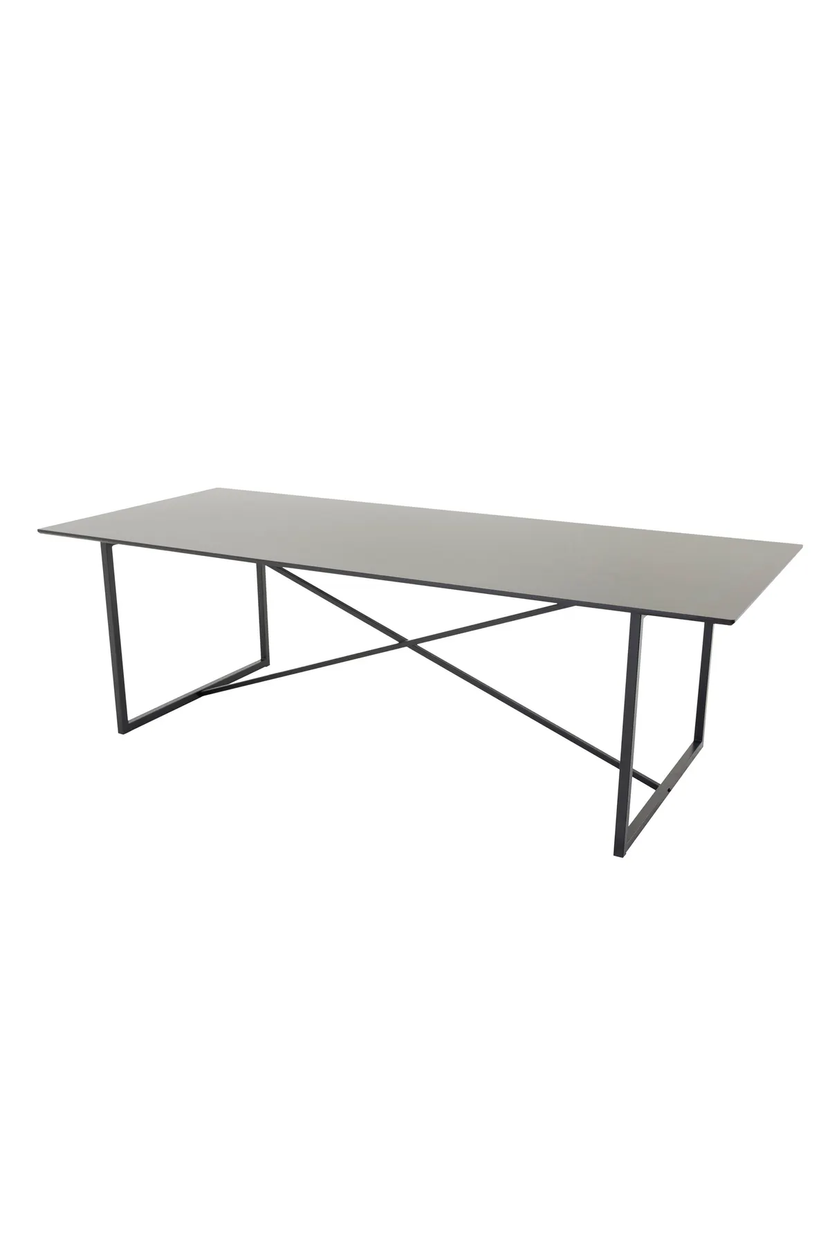 Esstisch im klassischen Stil mit modernen, geraden Formen. Der Tisch hat einen charmanten Look mit einer Tischplatte aus schwarzem MDF und einem dekorativen Metalluntergestell. Das Design und die Farbe verleihen dem Raum ein freches, modernes und einladendes Gefühl. Veredeln Sie Ihre Essgruppe durch die Wahl der Esszimmerstühle und geben Sie der Einrichtung Ihre persönliche Note!