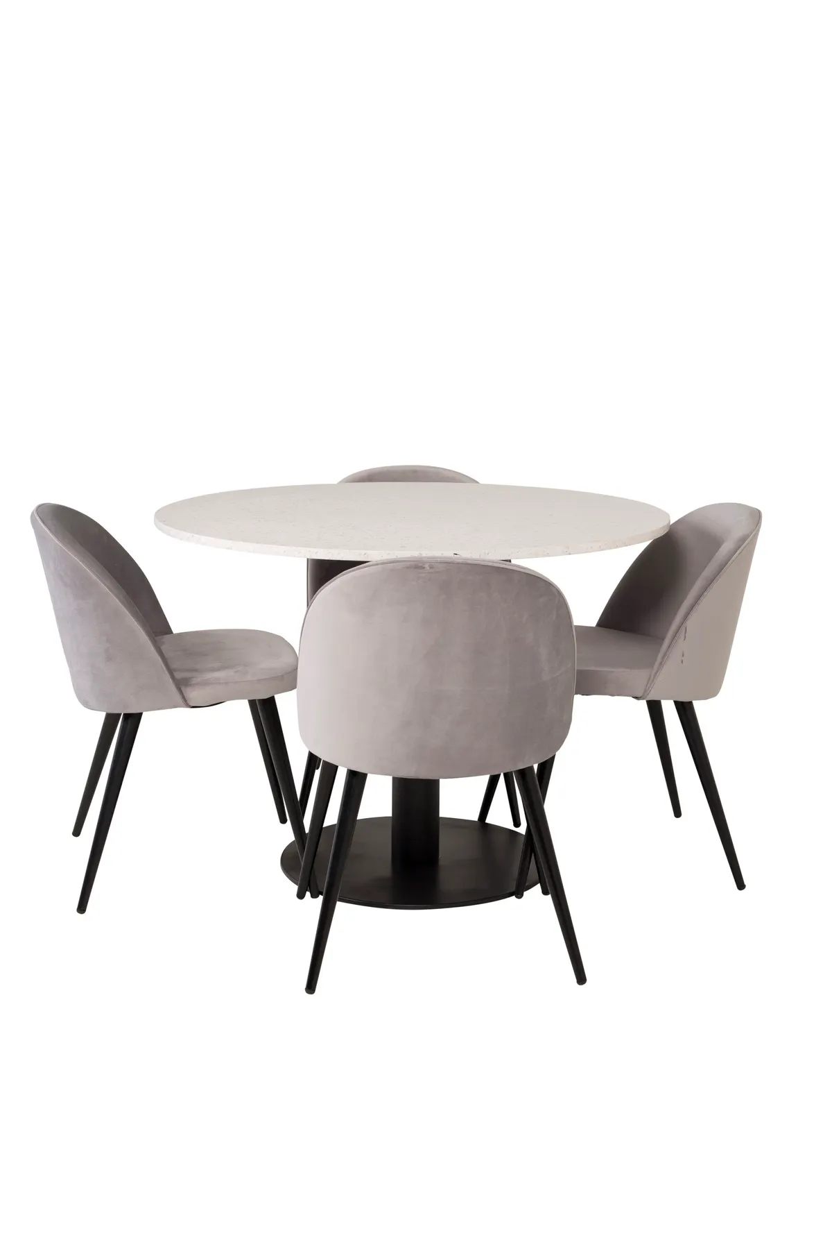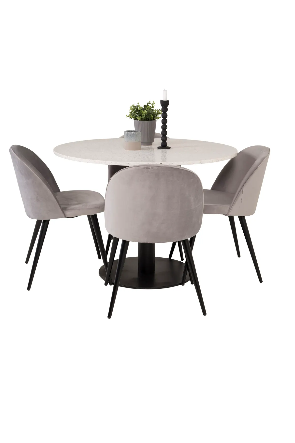 Esstisch raid in schlankem Design, zusammen mit Esszimmerstühlen Velvet – die perfekte Kombination für alle, die eine trendige Essgruppe wünschen. Der hohe Sitzkomfort der Stühle lädt zu langen und schönen Momenten der Geselligkeit ein!