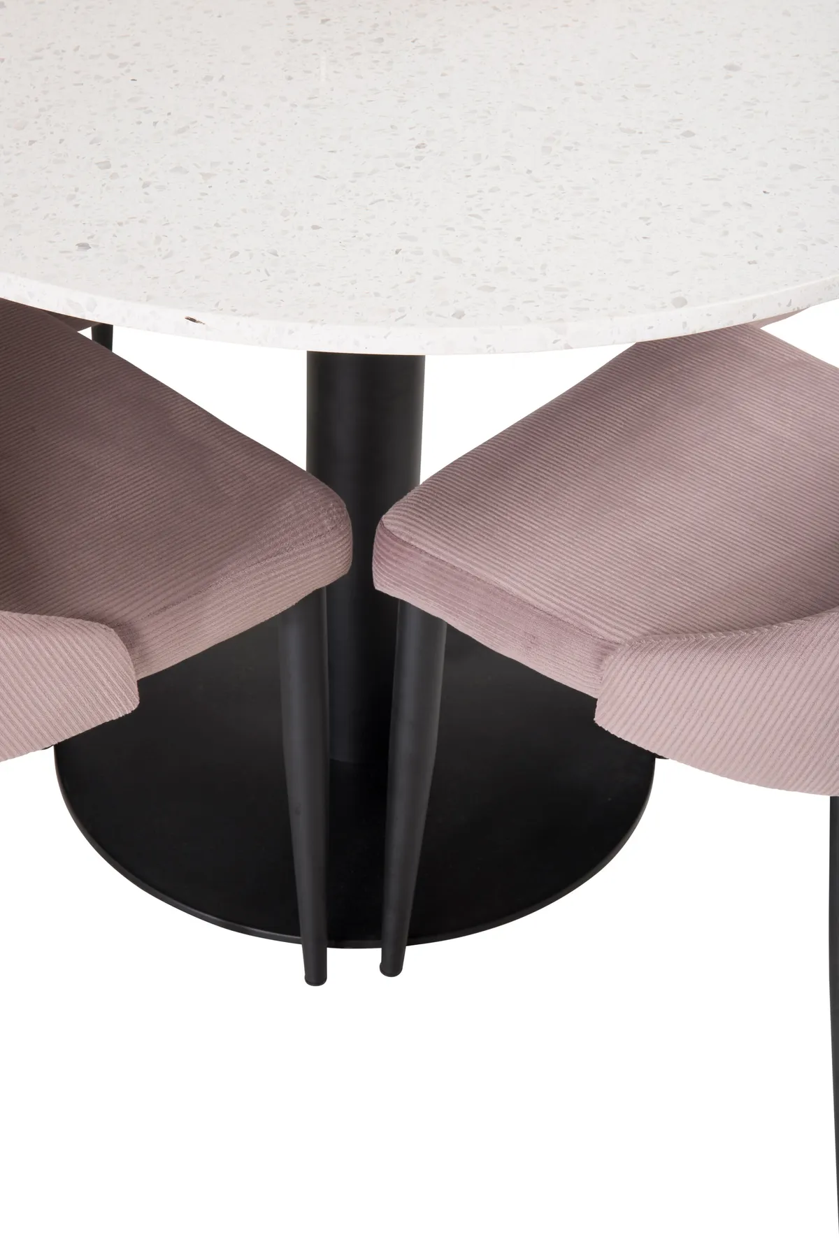 Eine Essgruppe in modernem und stilvollem Design. Esstisch Razzia und Esszimmerstühle Leone sind die perfekte Kombination für das Herzstück des Hauses, das wahrscheinlich genauso gut zu Ihren Bedürfnissen passt wie zu Ihrer übrigen Einrichtung.